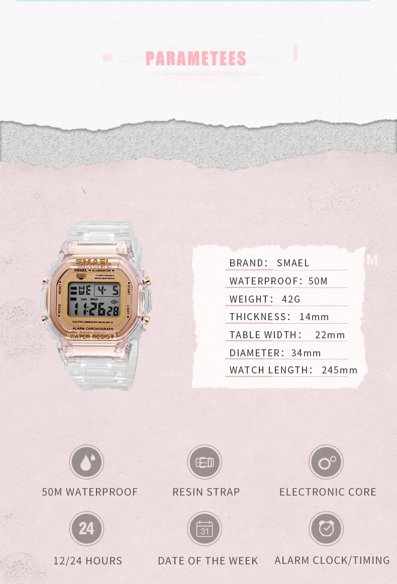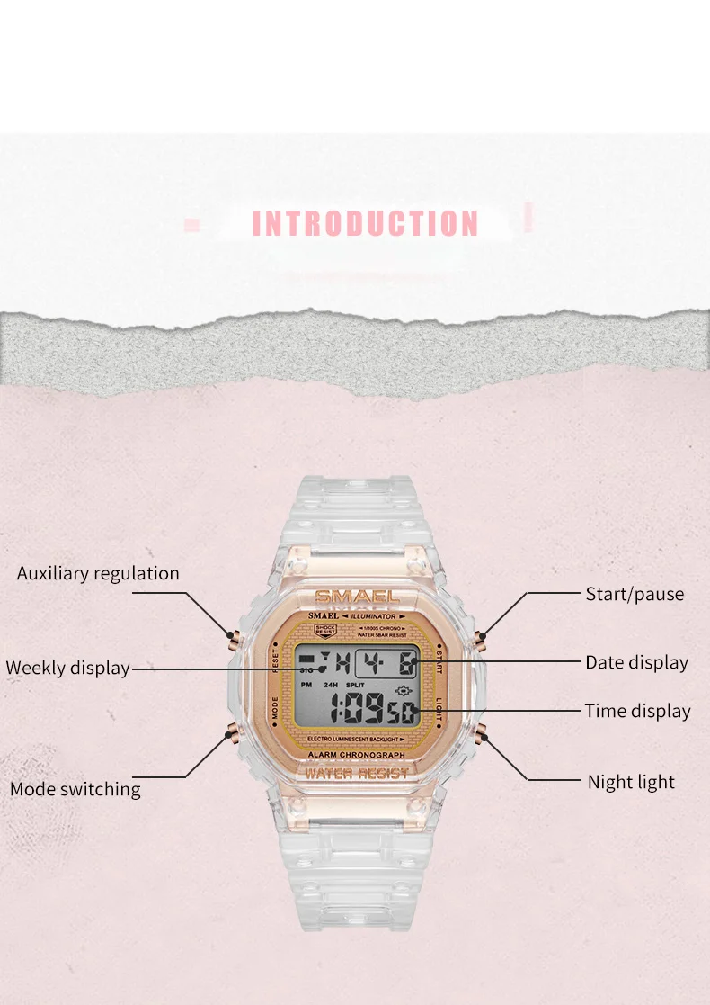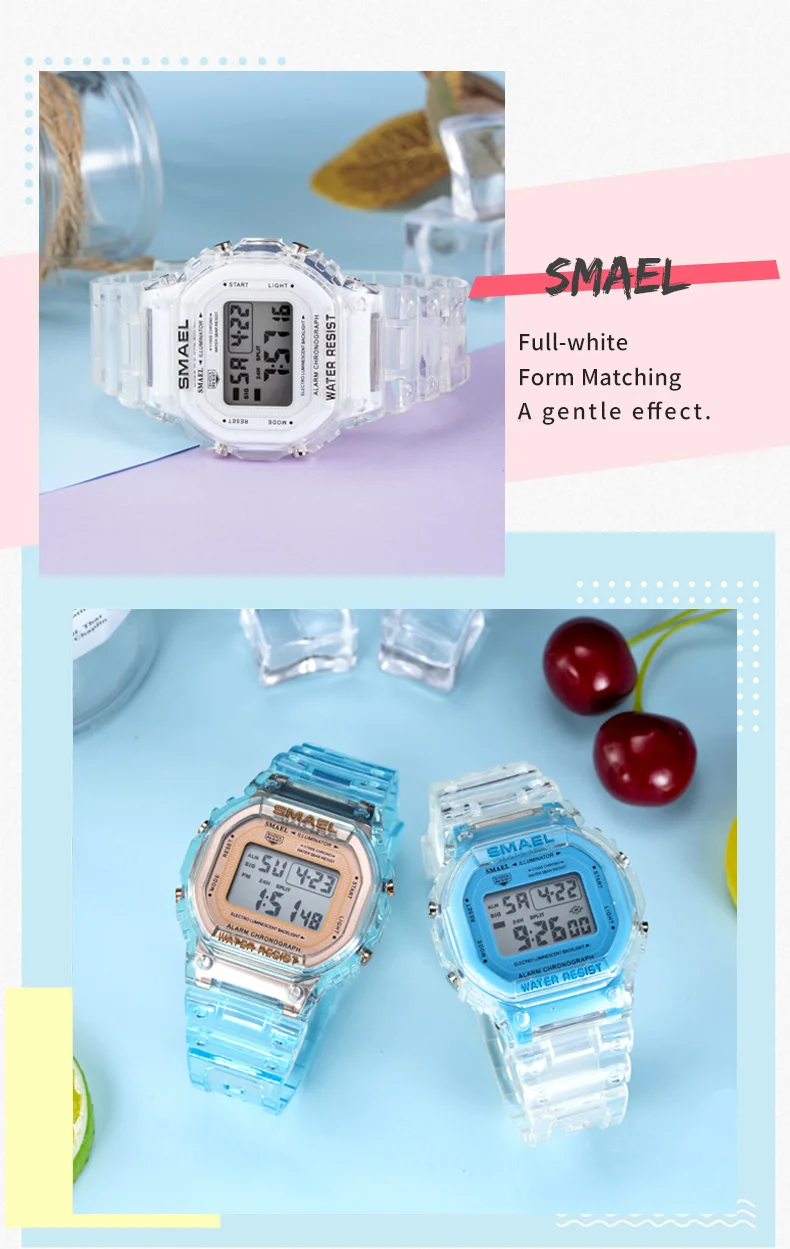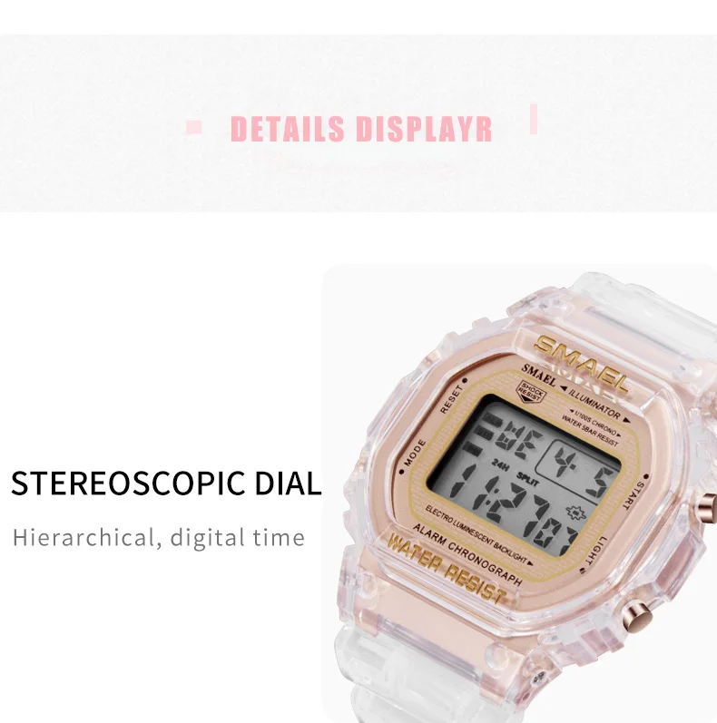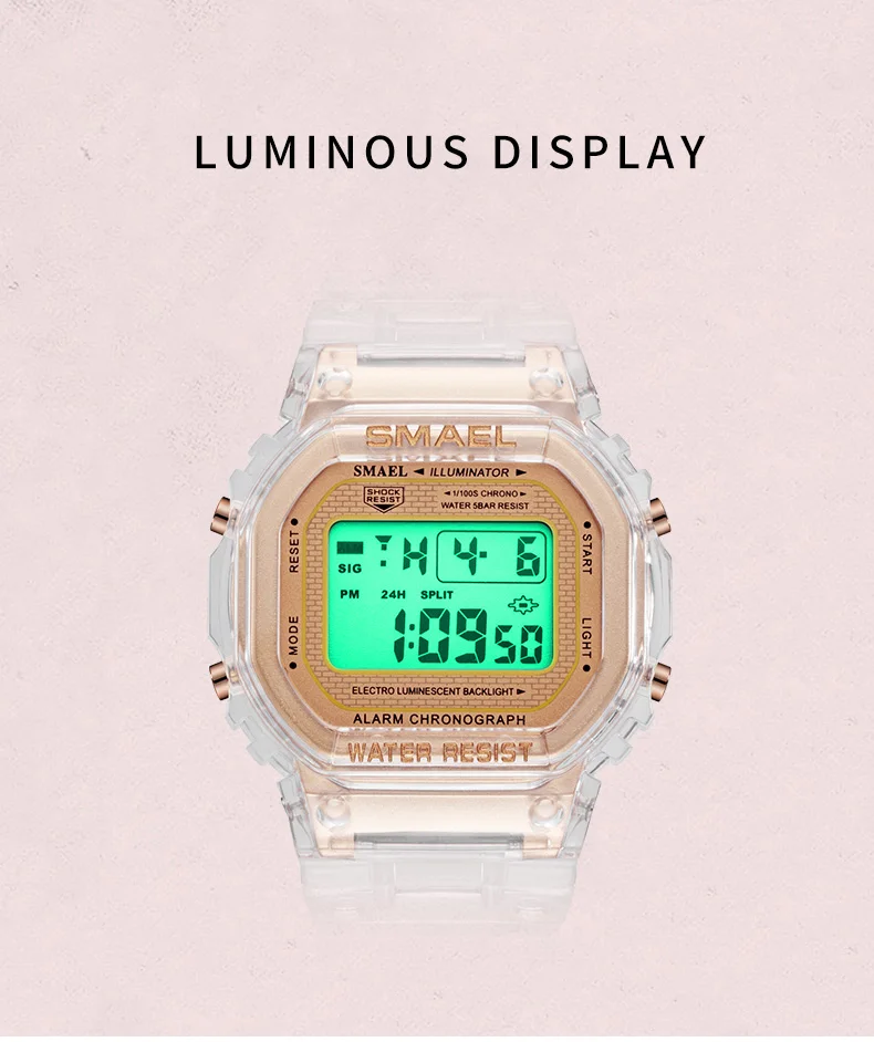 SMAEL 2020 модные цифровые часы для мальчиков светящиеся водонепроницаемые наручные часы с прозрачным полимерным ремешком спортивные часы для подростков 1905