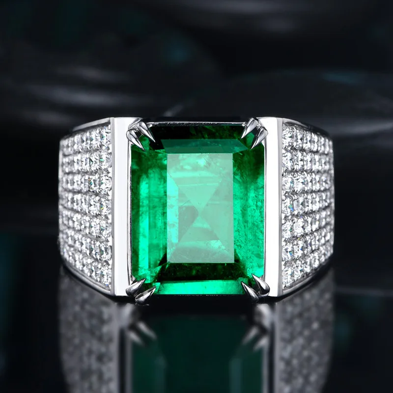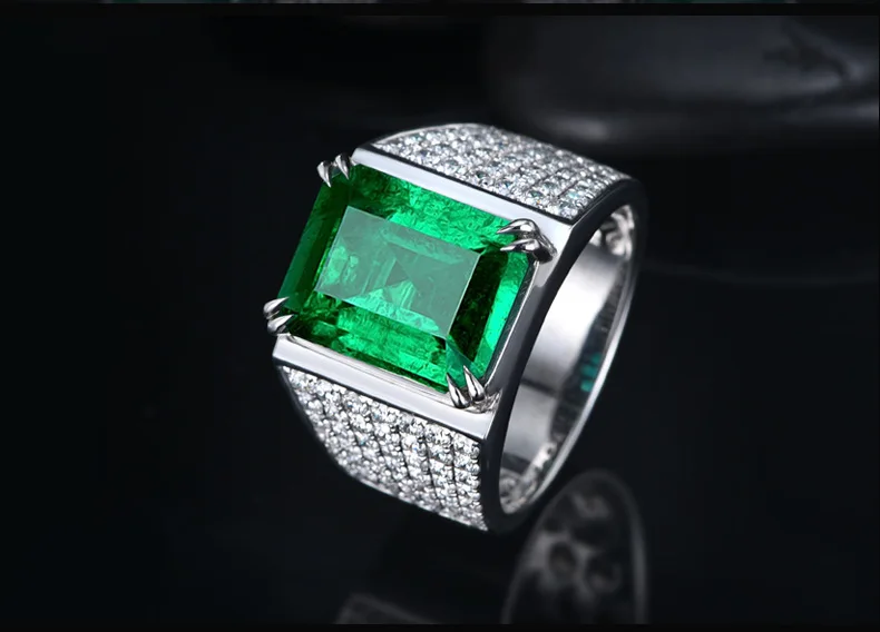 WEGARSTI 925 пробы серебряные мужские кольца длинные прямоугольные с изумрудом кольцо с бриллиантами Pave для мужчин Роскошные обручальные кольца с кубическим цирконием