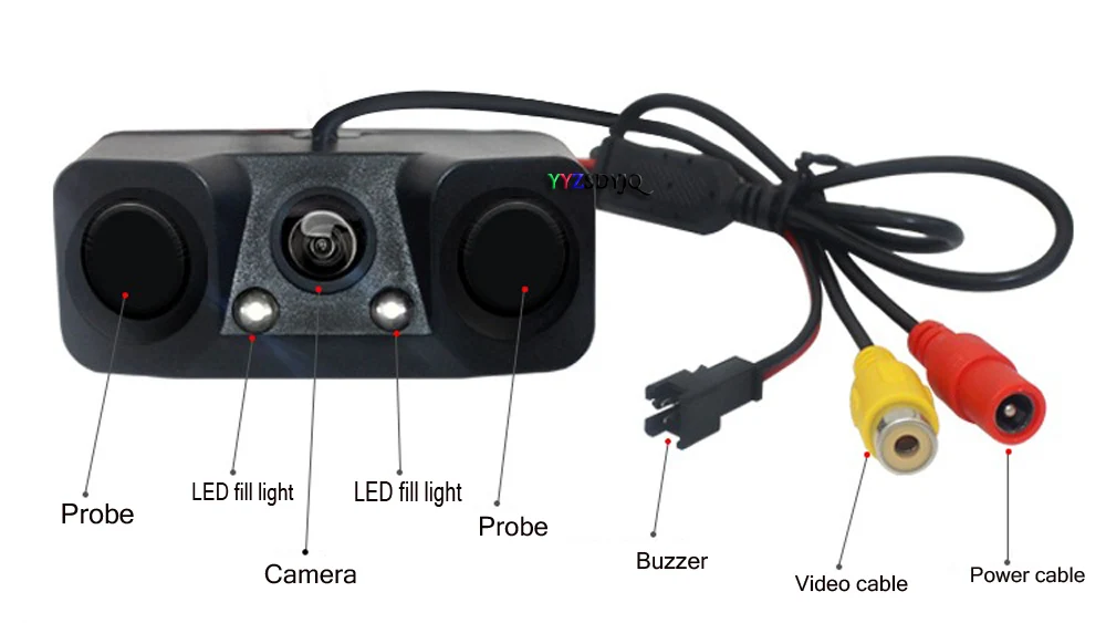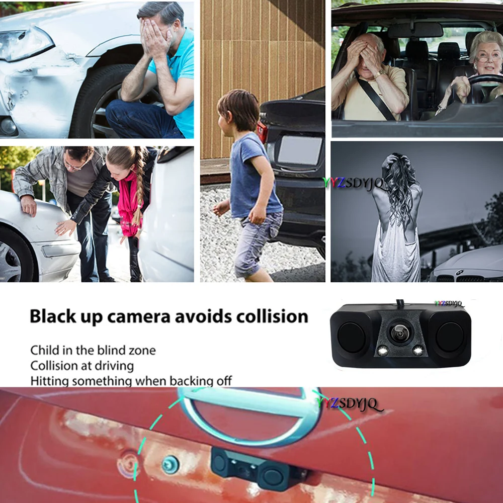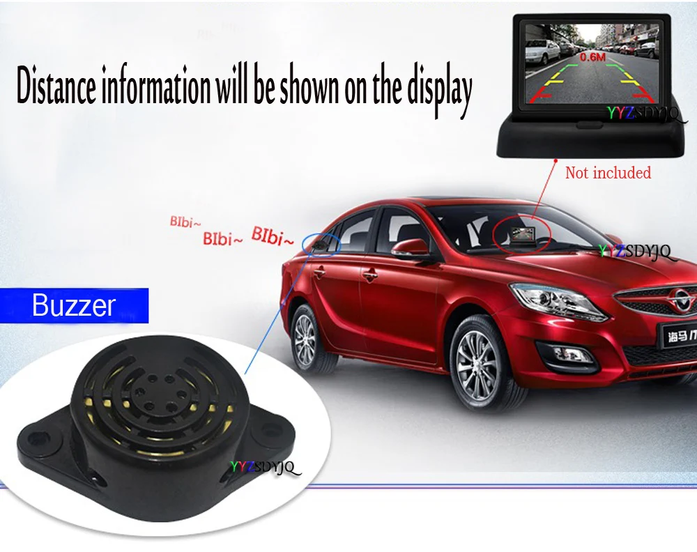 Покажите изображение заднего вида и расстояние на мониторе одновременно, если вы подключите dvd-проигрыватель или автомобильные мониторы. Держите вас безопасной парковкой Этот датчик парковки также предупредит вас через Биби динамик, так как расстояние 0,3-2 м.