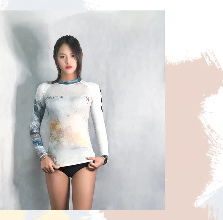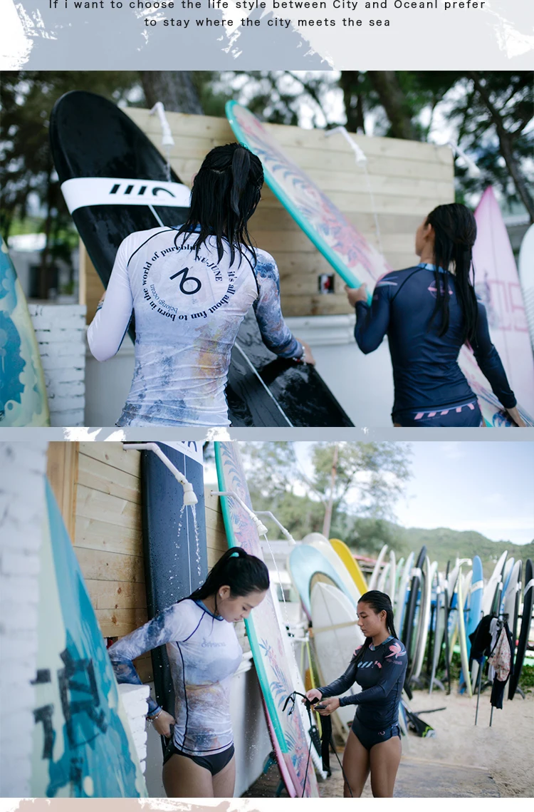 Nu-June женский купальник с длинным рукавом, ретро принт с чернилами, топ для серфинга, рубашка для бега, для езды на велосипеде, Рашгард UPF50 + Купальник