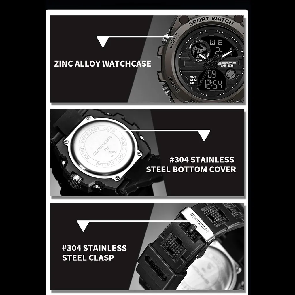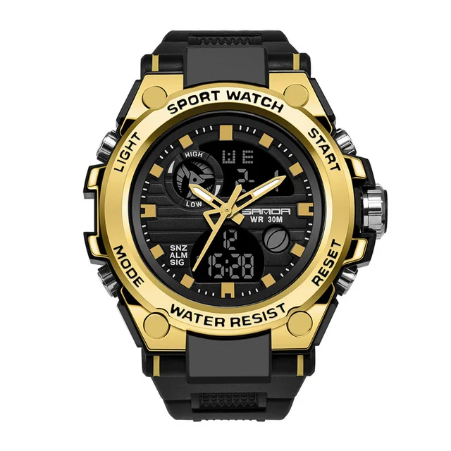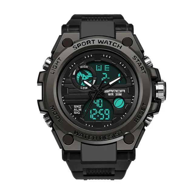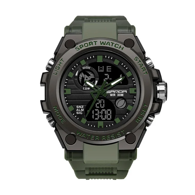 Высокое качество Мужские спортивные часы с двойным дисплеем аналоговые цифровые светодиодные электронные наручные часы 30 метров водонепроницаемые