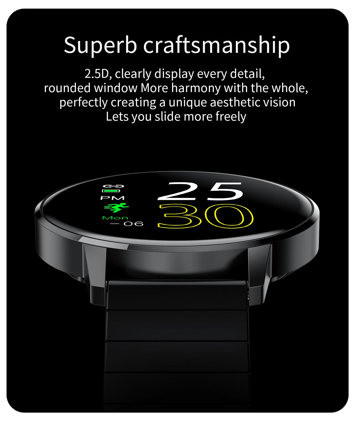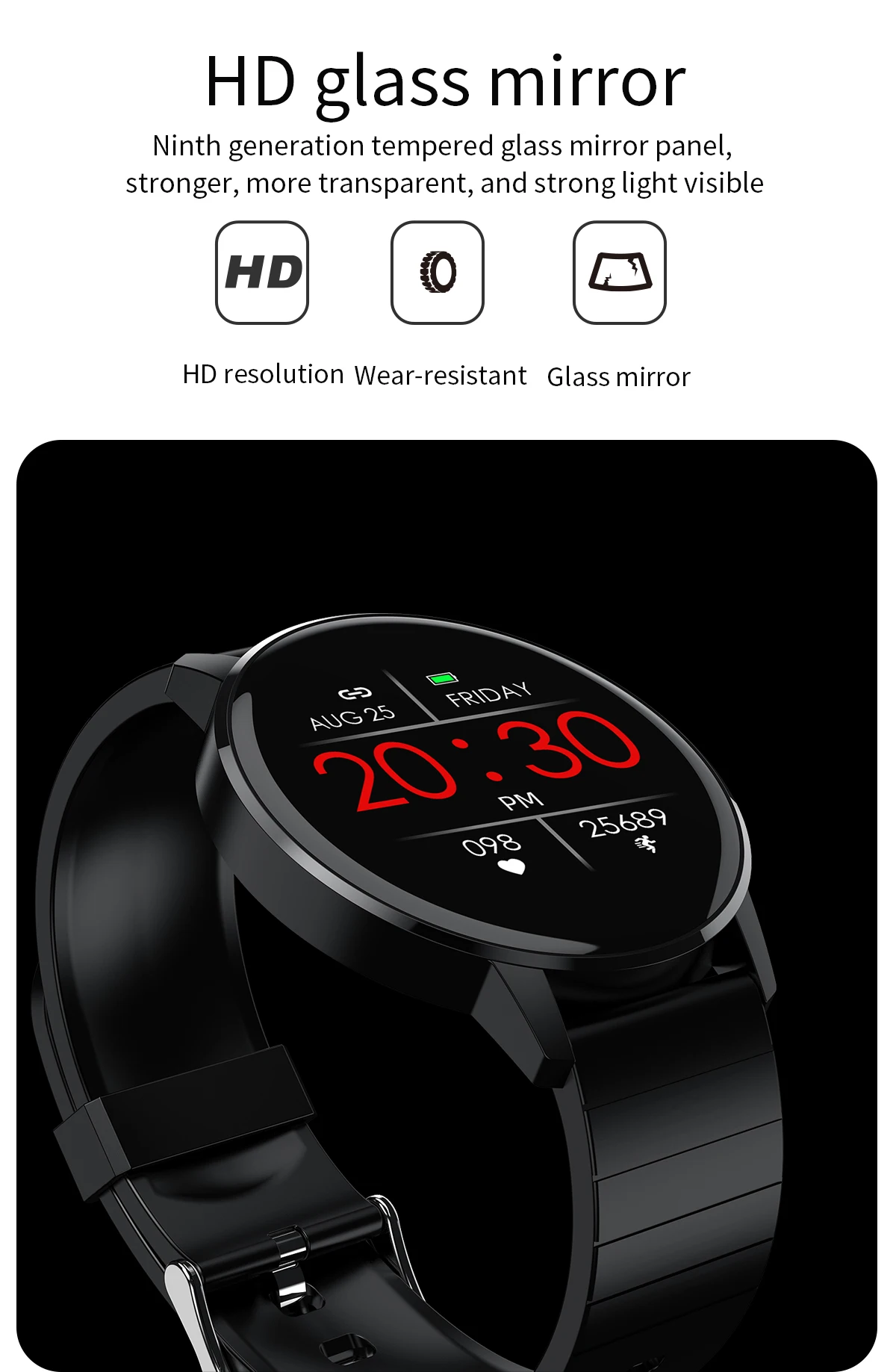 * Платформа: HS6620D * Моделирование продукта: спортивные часы для здоровья * Машинный Размер: 42 мм * 42 мм * 9,9 мм, Размер ремешка 238 мм * 22 мм * 2,0 мм * Чехол Материал: сплав чехол, 2.5D стеклянное зеркало * Материал ремешка: силиконовый ремешок • Главный экран: 1,3 Дюймов Полное прилегание круглый экран высокой четкости * Разрешение: 240*240 * Сенсорный экран: Полное касание * Размер и Емкость аккумулятора: 160 мАч, stadby 30 дней * Водонепроницаемый: IP67 Водонепроницаемый (пожалуйста, не прикасайтесь к горячей воде) * Приложение: Wearfit 2,0