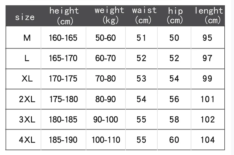 Таблица размеров