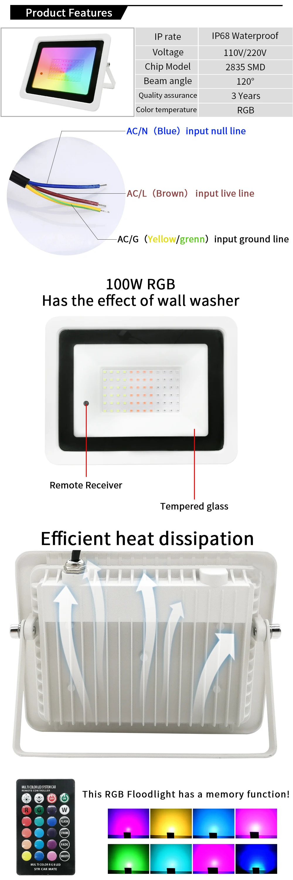 Характеристики продукта: Название продукта: разноцветный "Красный-зелёный-желтый светодиодный прожектор светильник Мощность: 20 Вт/30 Вт/50 Вт/100 Вт Напряжение: 220 В/110 В Цветовая температура: RGB Водонепроницаемый: IP68 водонепроницаемый Длина кабеля: 25 см Материал: алюминий + закаленное стекло Угол освещения (градусы): 120 градусов Размер: см. Описание изображения на странице сведений Особенности: Этот прожектор RGB имеет функцию памяти! Он может записывать цвет на светильник, когда он наконец выключен! Когда светильник снова включен, цвет не изменяется! Аксессуары: Высокочувствительный пульт дистанционного управления с 24 клавишами Встроенный приемник с дистанционным управлением! Красивый и стильный!