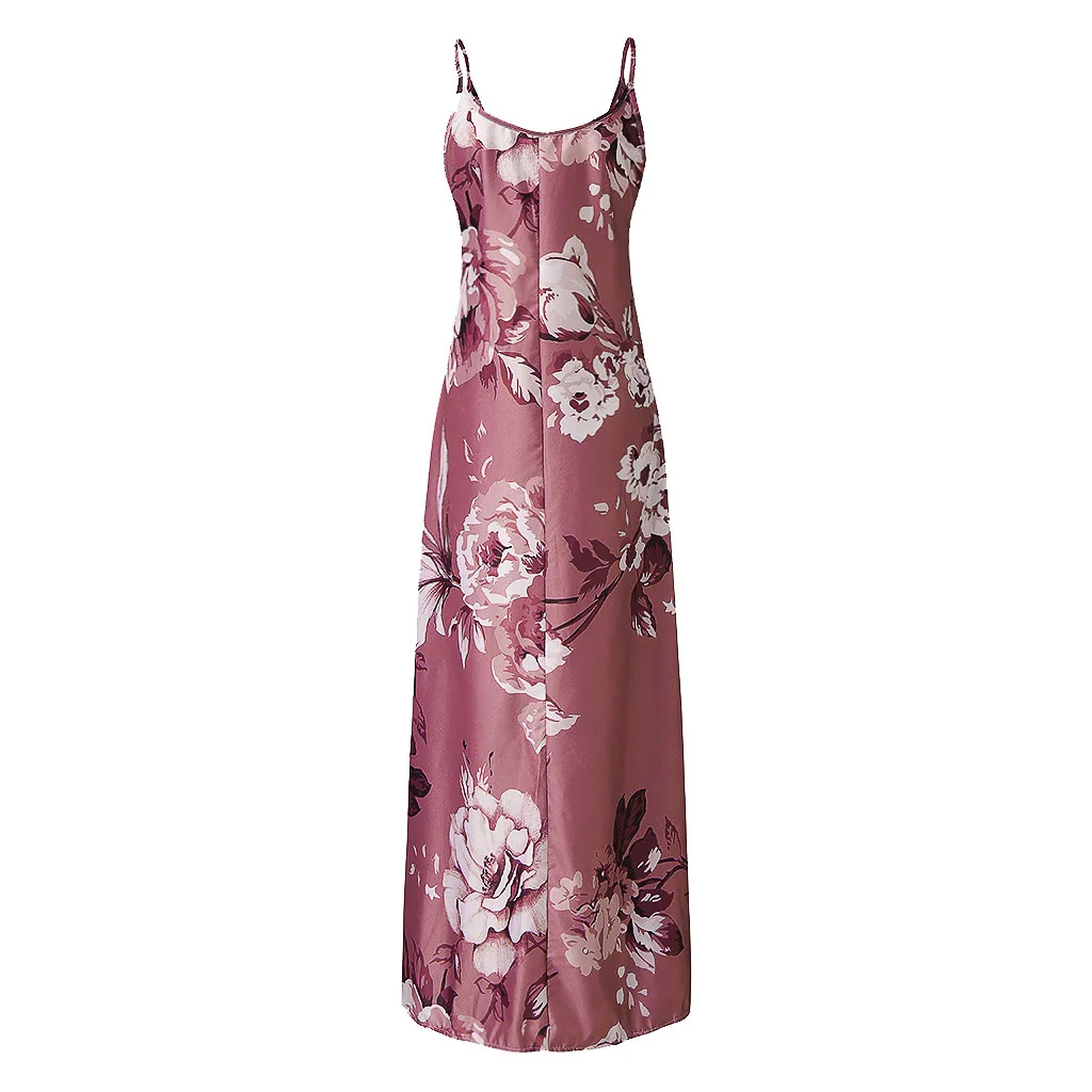 Женское сексуальное Повседневное платье без рукавов с цветочной печатью платье длинное платье