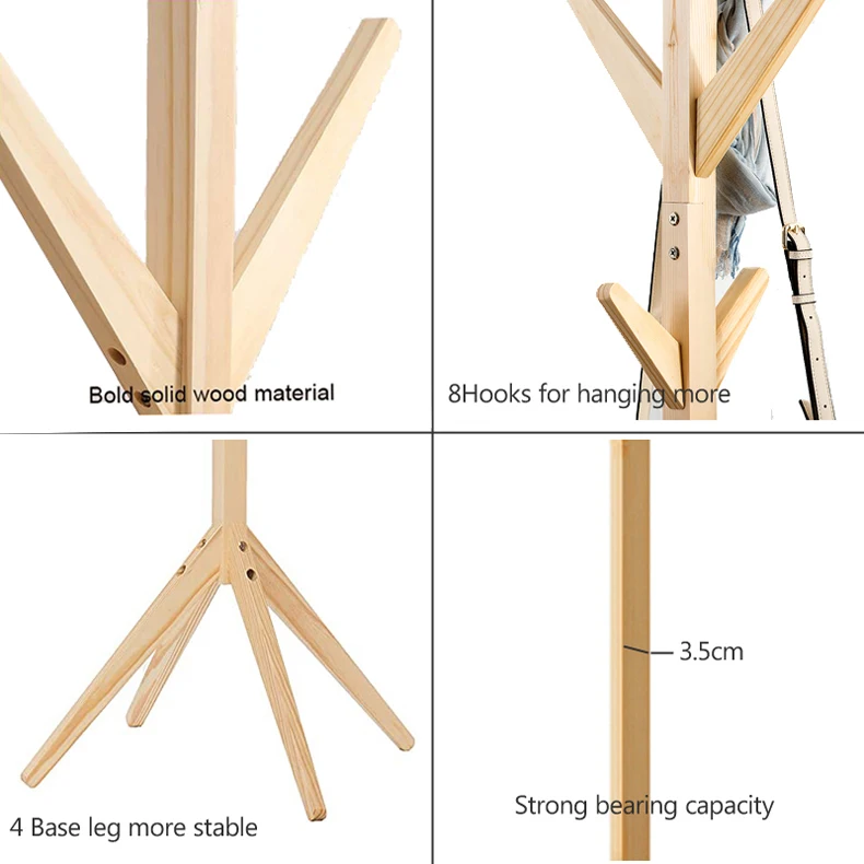 Скандинавский стеллаж для пальто с 8 крючками, деревянная стойка для пальто, сборочный шкаф, вешалка для одежды, органайзер подъезда для мебели для спальни Свободная стойка для пальто, красивая и функциональная, эта современная вешалка для пальто имеет 4 Хорошо разделенных яруса и 8 подвесных крючков для более эффективной поддержки и организации одежды, тяжелых курток и личных предметов Многоцелевой персональный органайзер-высокий, компактный стиль позволяет вам поставить в угол, прихожую, кладовую или на переднюю дверь, чтобы повесить зимние пальто, шапки, зонтик, шарфы, кошельки или сумки, не повреждая материалы Экологичная деревянная конструкция, обеспечивающая долговечность, прочность и устойчивость эти стойки для пальто имеют естественный цвет, который улучшает внешний вид вашей гостиной, дома, офиса или другого личного пространства Материал: дерево Размеры: 45x45x175cm Посылка включает в себя: 1x деревянная полка для пальто