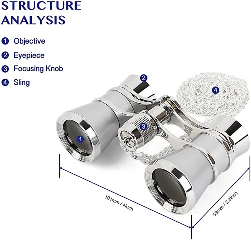 Стильные и современные оперы с цепочкой Красивый дизайн и долговечность 100% качественные материалы, используемые и тщательно протестированные 3х увеличение для просмотра в помещении, специально подходит для театра Так как этот продукт не профессиональная оптическая линза. Это более декоративно по сравнению с практичностью. Это идеальный подарок на день рождения, Рождество, Хэллоуин, День Благодарения.