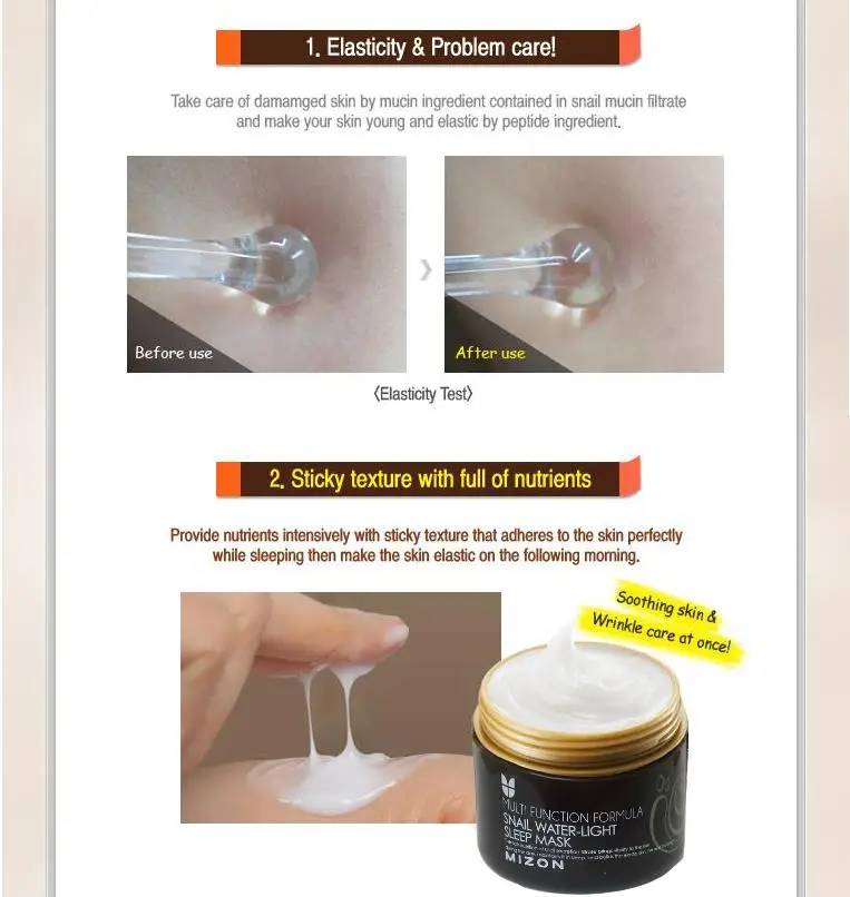 DescriptionEyenlip Улитка воды светильник ночная маска для лица на основе 80 мл + мизон Улитка прозрачный оживить ампульная эссенция 30 мл Улитка Сыворотки уход за кожей лица Маска анти-старения