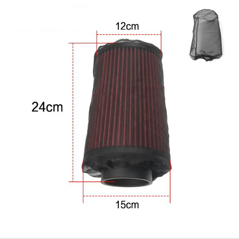 Универсальный, подходит для большинства цилиндрических воздушных фильтров с высоким потоком. (Пожалуйста, подтвердите размеры воздушного фильтра перед покупкой) Технические характеристики: Название продукта: защитный чехол для воздушного фильтра Материал: Пылезащитная ткань Основной цвет: черный Размеры: L12 * 24*15 см, S11.8 * 15,1*15,5 см Вес: 20 г Особенности: О водостойком, маслоустойчивом, пыленепроницаемом эффекте: во время работы продукт не влияет на непромокаемую воду и не может полностью предотвратить засасывание дождевой воды, И может только предотвратить попадание капель воды (масляных пятен). Основная функция заключается в том, чтобы предотвратить вдыхание пыли и предотвратить вдыхание более 90% пыли. Посылка включает в себя: 1x крышка воздушного фильтра