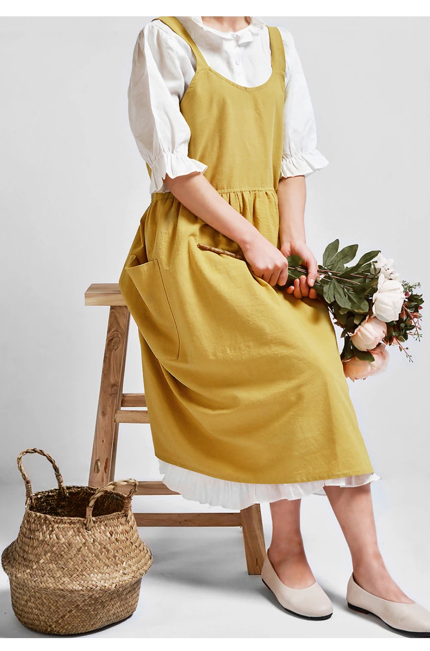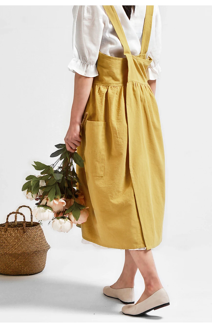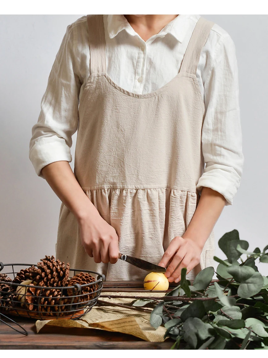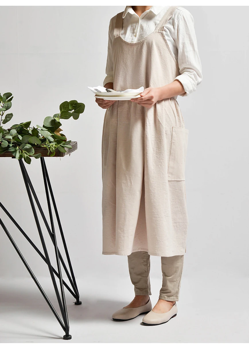 Kitchen Cooking Apron fashion Home Sleeveless Cotton Linen Aprons for Women Baking Accessories Material: Washed cotton and linen (80% cotton, 20% linen) Size: 82cm height × 105cm width Authentic cotton and linen material, suitable for high-end cafes, lounge bars, home baking,