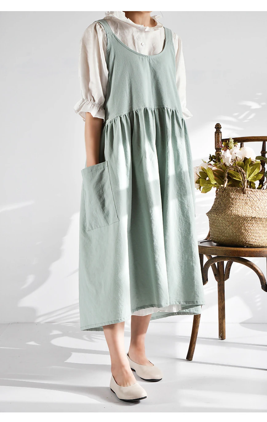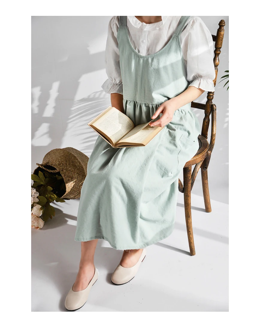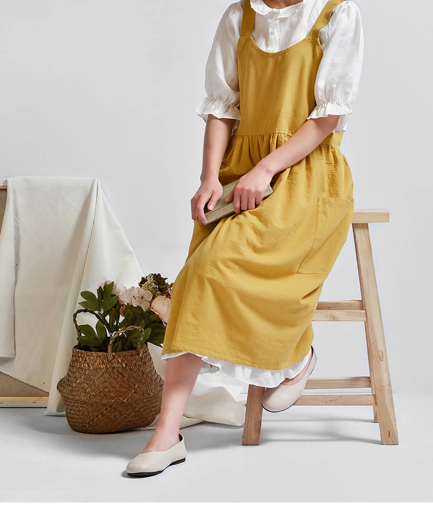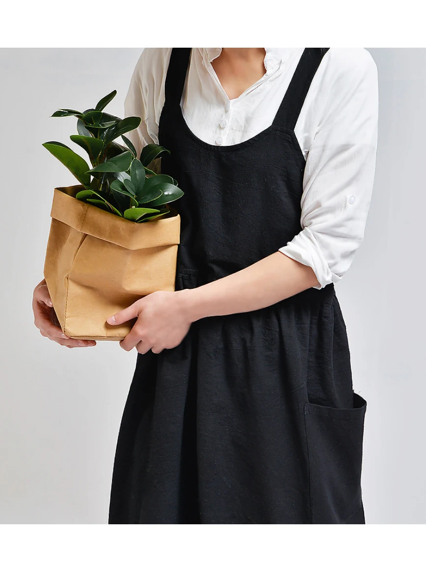 Kitchen Cooking Apron fashion Home Sleeveless Cotton Linen Aprons for Women Baking Accessories Material: Washed cotton and linen (80% cotton, 20% linen) Size: 82cm height × 105cm width Authentic cotton and linen material, suitable for high-end cafes, lounge bars, home baking,