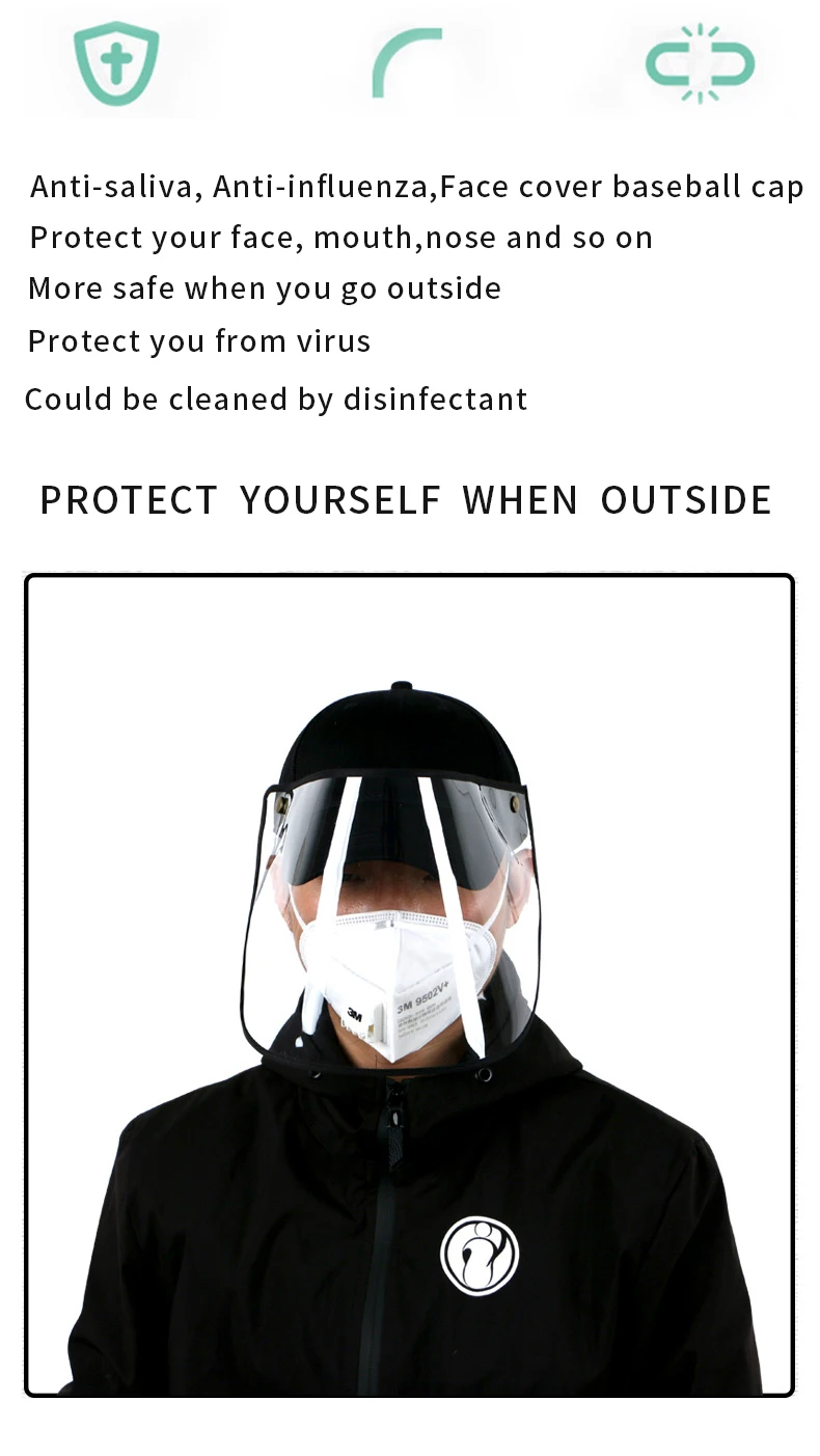 Весенняя наружная солнцезащитная Кепка, маска для защиты глаз, бейсболка для женщин и мужчин, съемная однотонная антислюнная маска для лица, шапка