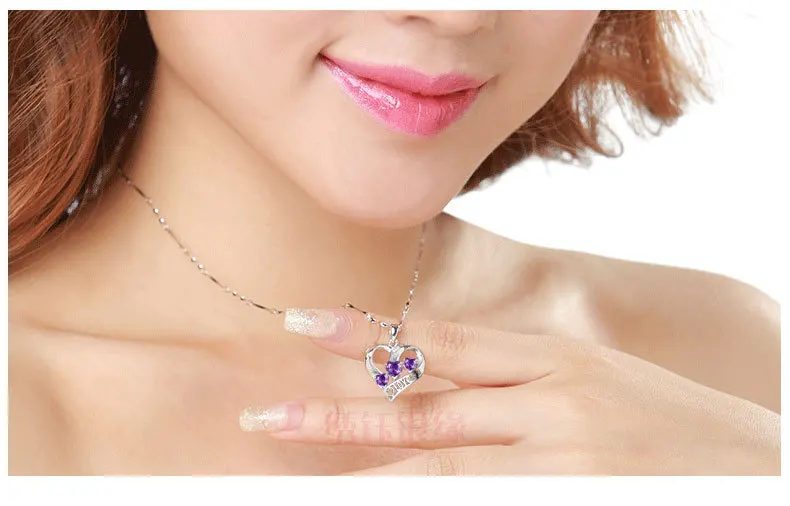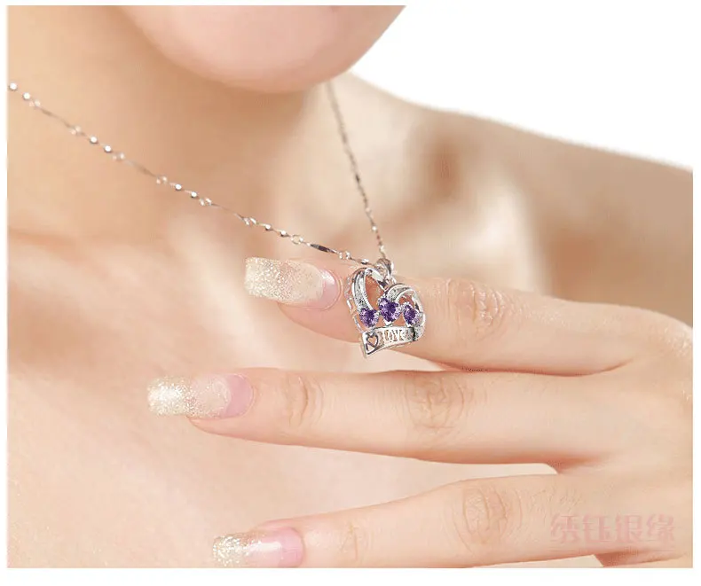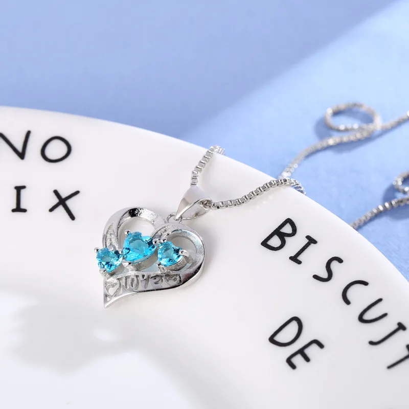 Горячая продажа 925 Серебряное Хрустальное Сердце Ожерелье Подвеска для женщин синяя романтическая CZ Серебряная цепочка подвеска ожерелье Свадебные ювелирные изделия