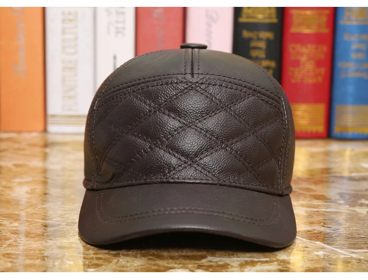 Зимняя шапка-ушанка, теплая шапка-ушанка для пожилых людей, уличная Кепка из натуральной кожи, наушники для папы, русской ушанки