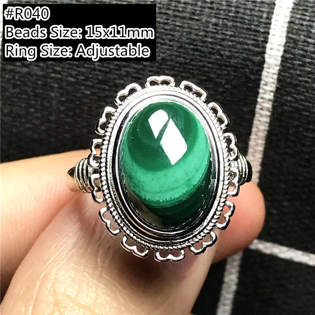 Топ натуральный зеленый малахитовый хризоколла кольцо для женщин мужчин овальные бусины удача Исцеление Кристалл серебро регулируемое кольцо ювелирные изделия AAAAA Прямая поставка