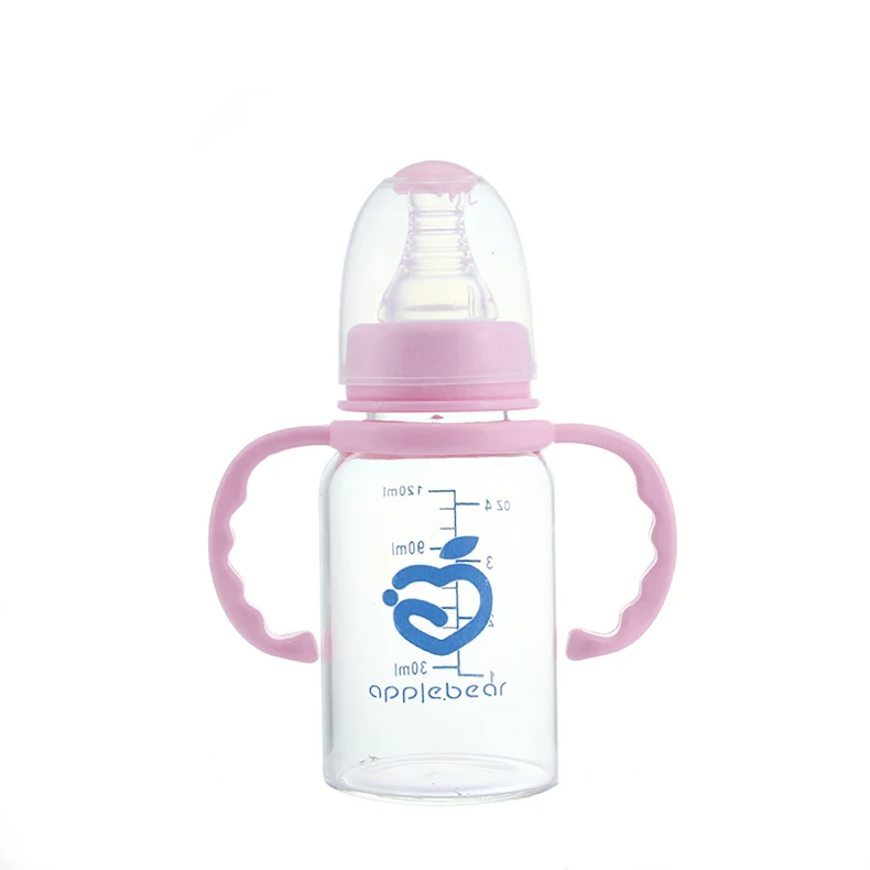 120 мл детская стеклянная бутылочка для кормления молока с противоскользящей ручкой и крышкой для чашки, бутылка для воды для новорожденных