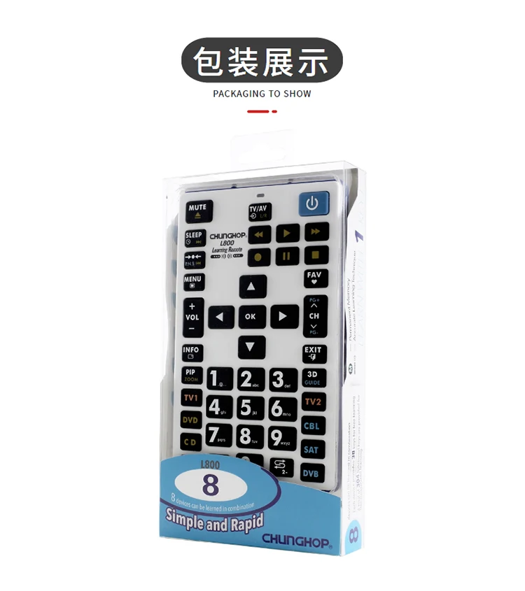 Этот пульт дистанционного управления имеет функцию обучения и памяти, и вам не нужно снова учиться, когда отключено питание и аккумулятор изменен. Обучение может быть настроено. Текст, напечатанный на пульте дистанционного управления, является просто предложением, вы можете узнать, как вам нравится. Например: вы можете узнать общие кнопки телевизора и телеприставки к телевизору 1 или другим страницам, таким образом, вы можете управлять телевизором и телеприставкой на той же странице без переключения.