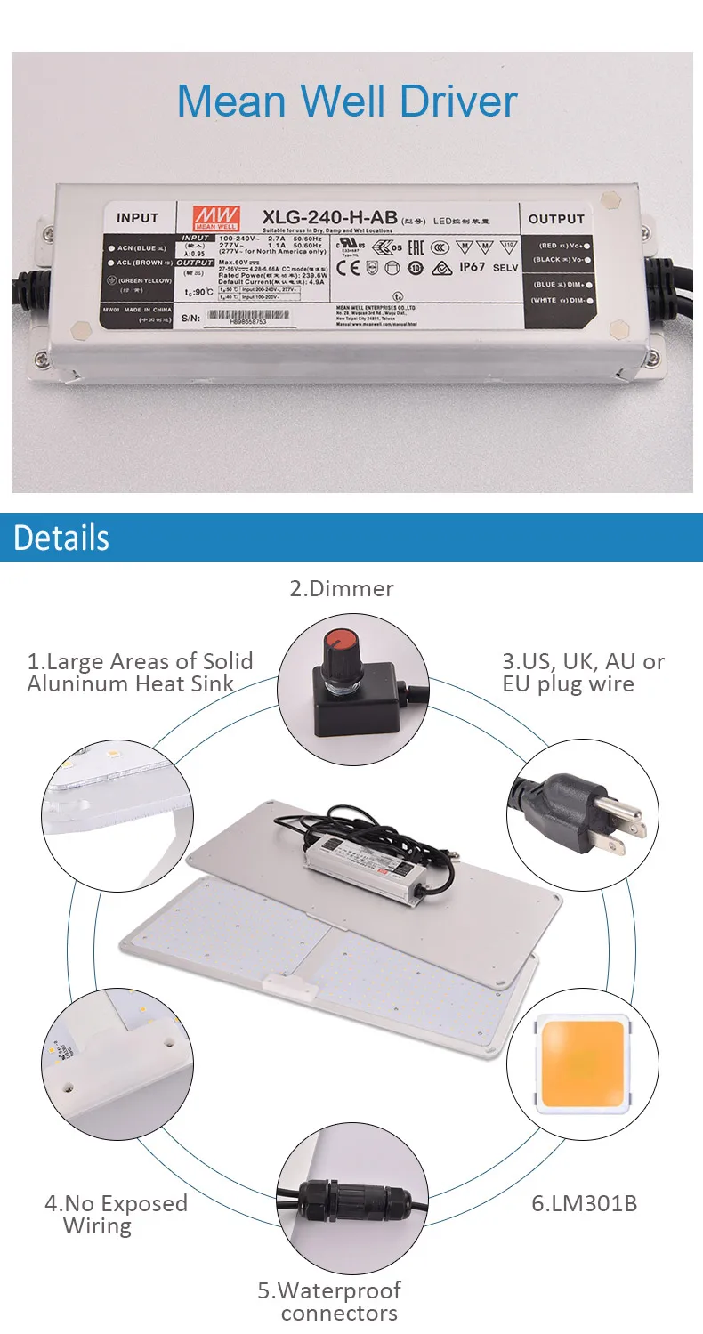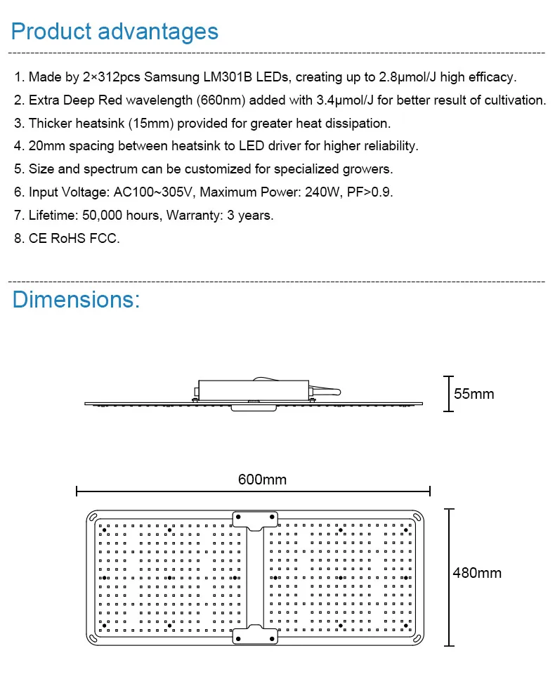 1. Опционально Samsung LM301B LED с высокой эффективностью 2,8 μmol/J.