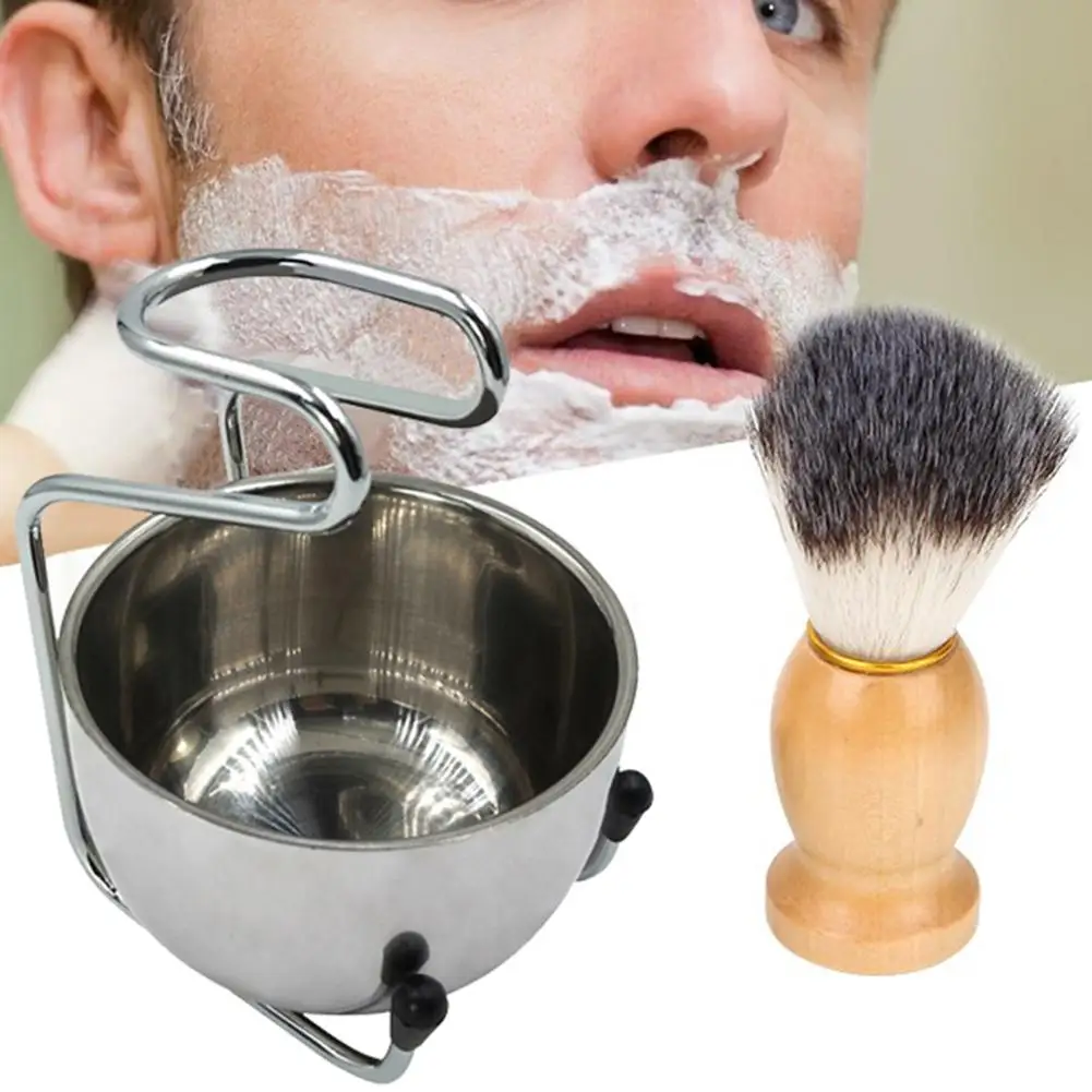 Мужская Борода для бритья чаша из нержавеющей стали Подставка деревянная щетка усы инструмент для красоты