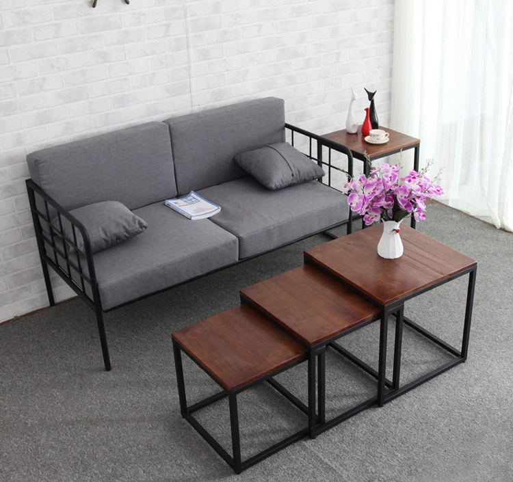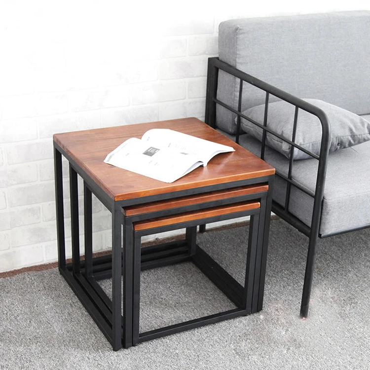Простой журнальный столик из цельного дерева для гостиной, диван, тумба для телевизора, угловой столик, Ретро стиль, железные ножки, квадратный, 3 комплекта