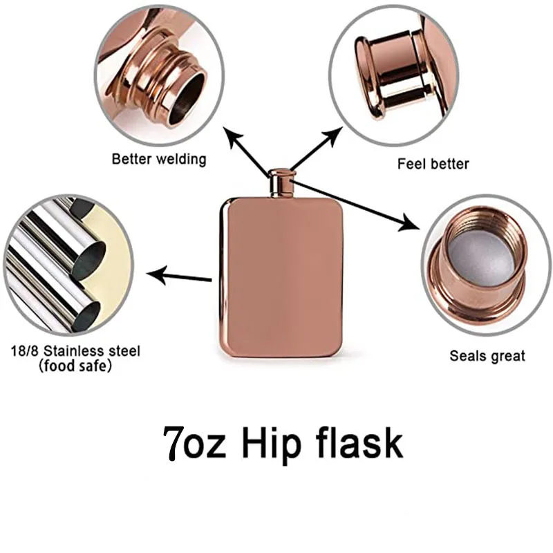 7 унций Алкогольная колба из нержавеющей стали розовое золото бутылка вина карманная тазобедренная колба подарок на день матери Свадебная вечеринка на заказ подарок подружки невесты