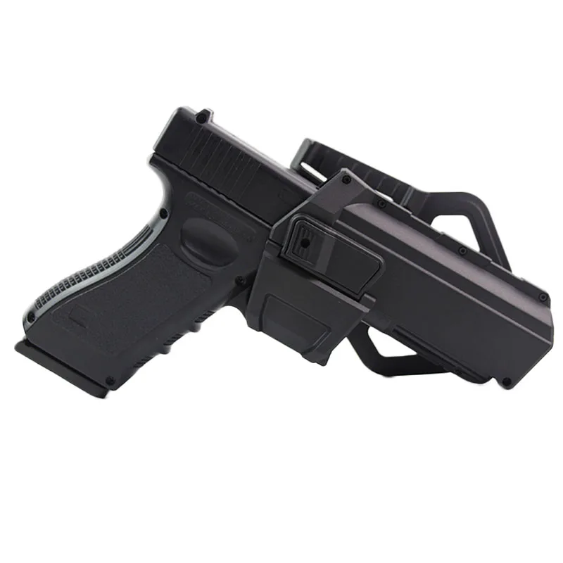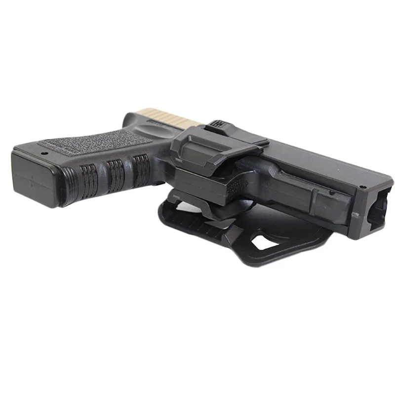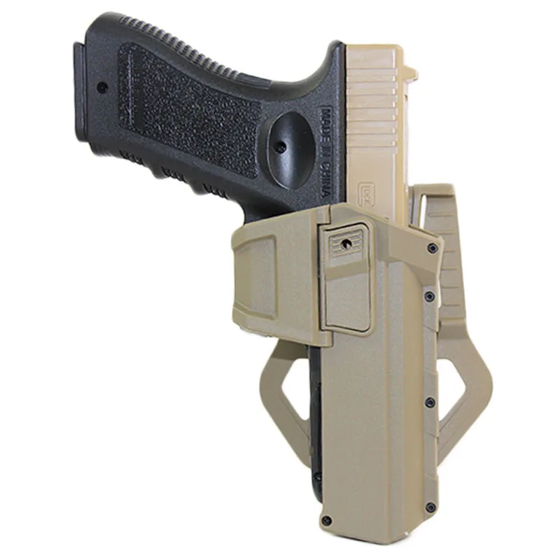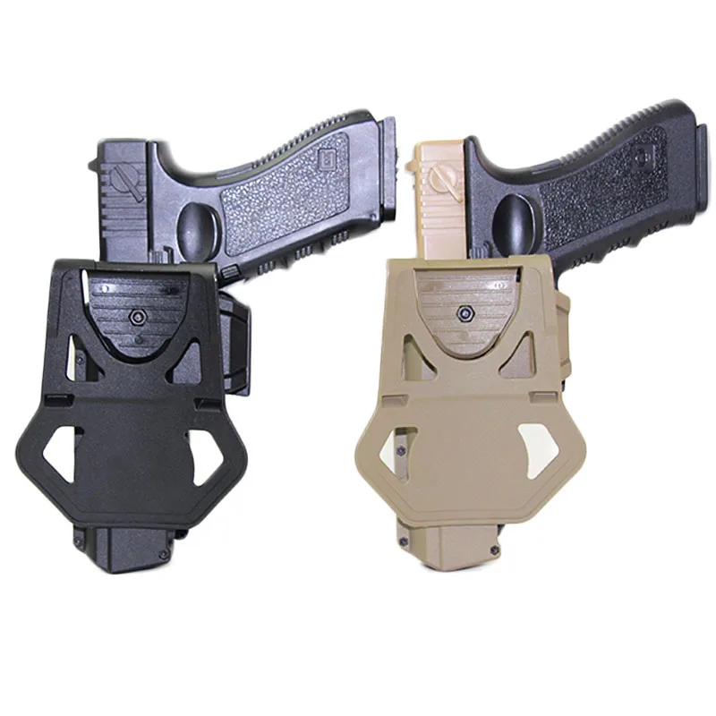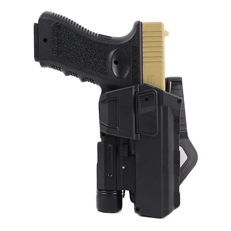 Подходит для тактического ремня 2 дюйма (5 см) Длина кобуры 135 мм It используется для Glock 17 18 19 22 23 пистолет с фонариком или лазером. Регулируемый угол наклона Для правостороннего пользователя Нажмите кнопку, чтобы разблокировать и нарисовать Цвет: черный/песочный Вес: 130 г Посылка входит: 1 * кобура для пистолета