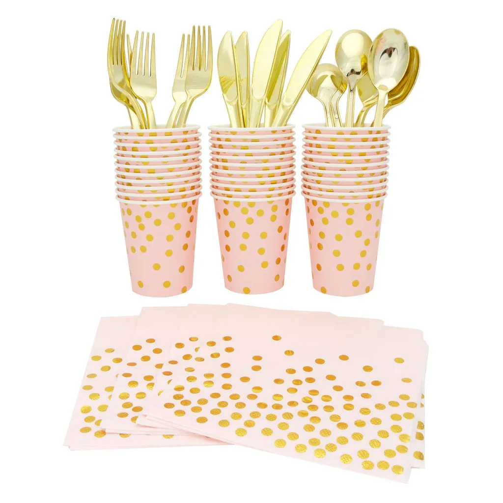 Роскошная и официальная универсальность-эта красивая одноразовая посуда станет идеальным дополнением к вечеринке по случаю Дня рождения, празднику в стиле, добавит класс к свадьбе или душе или сделает время веселее.
