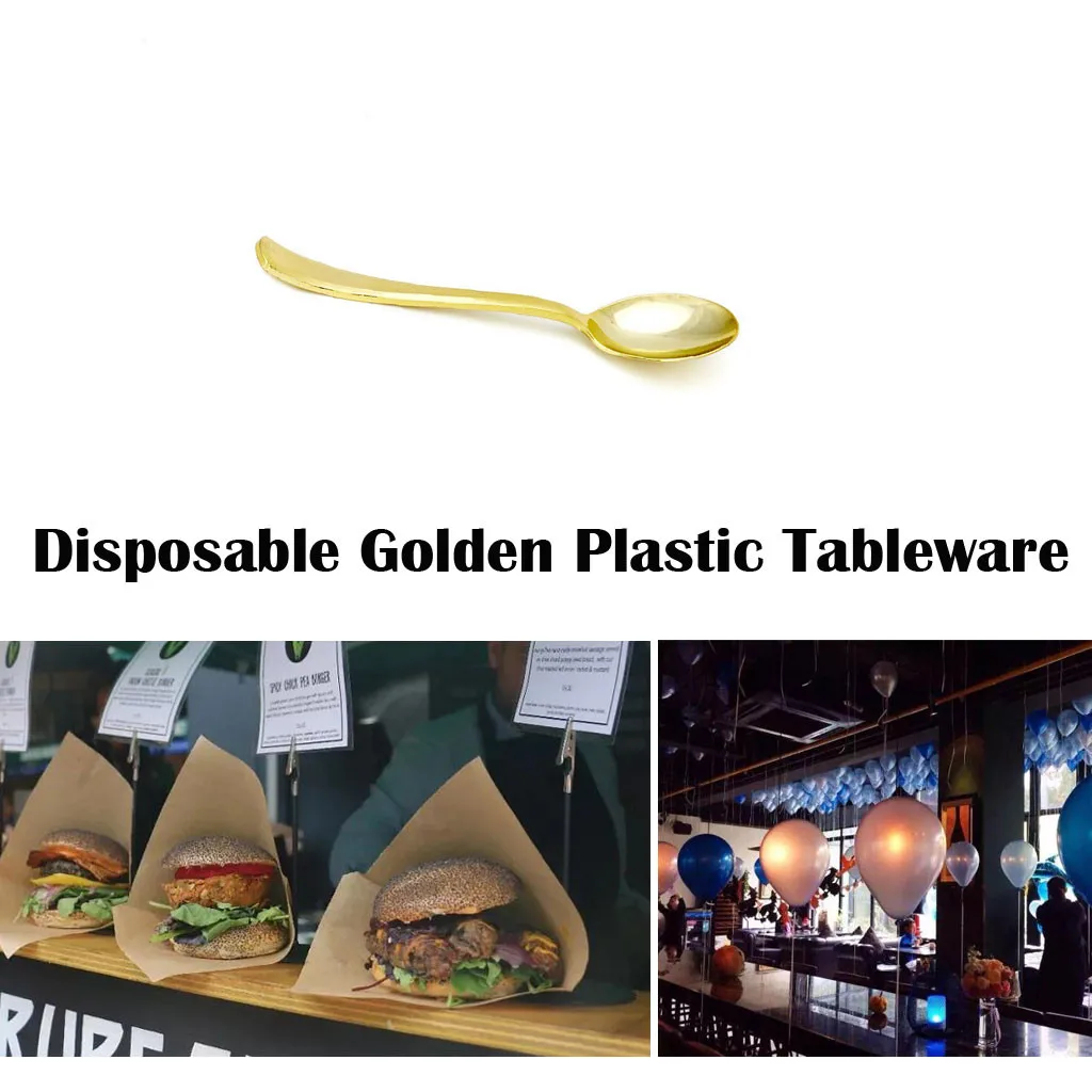 Одноразовые золото Цвет Пластик посуда столовые приборы, ложка, вилка, набор 25 шт. Горячие Вечерние