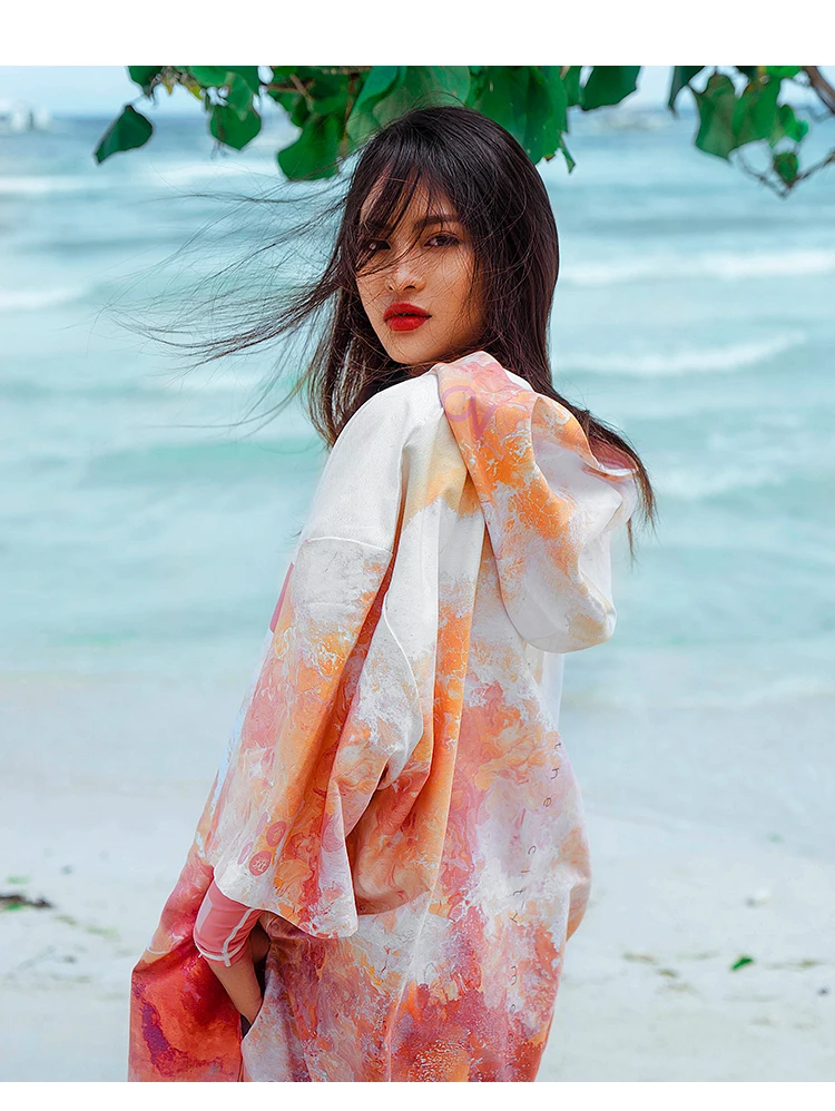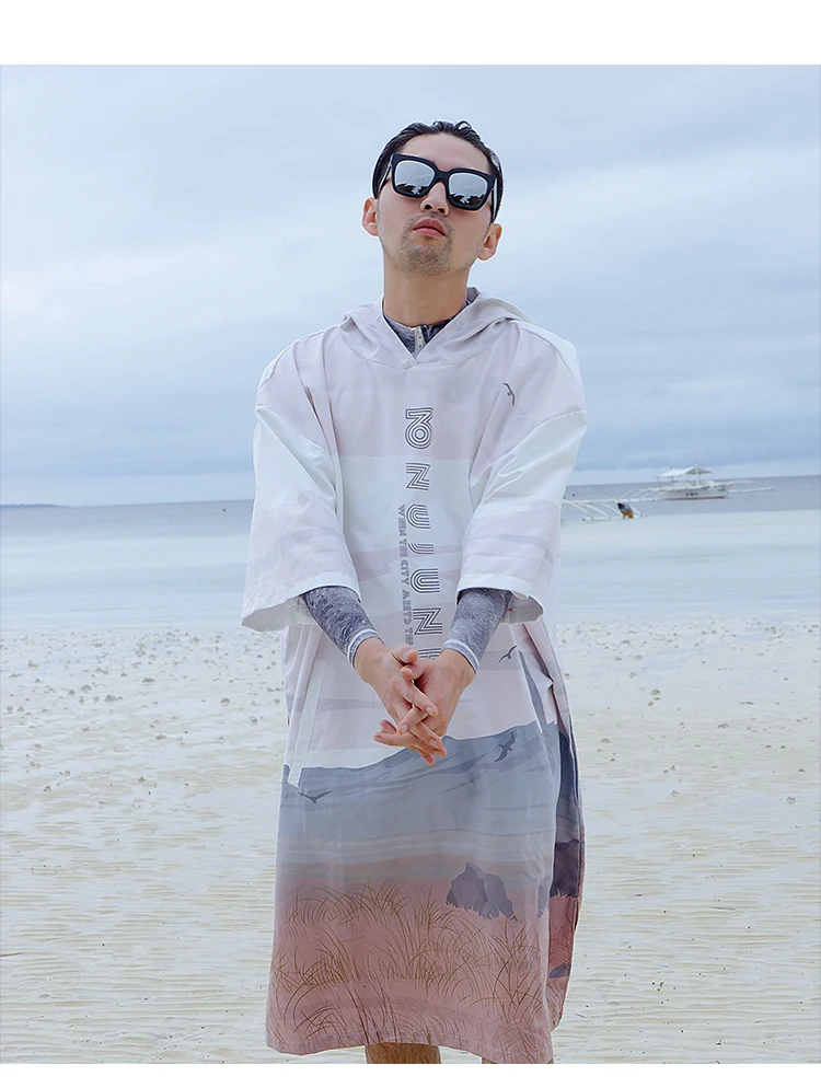 Банный халат из микрофибры с принтом Nu-June, банное полотенце, пляжное пончо с капюшоном, полотенце для мужчин и женщин, халат для плавания и дайвинга, плащ