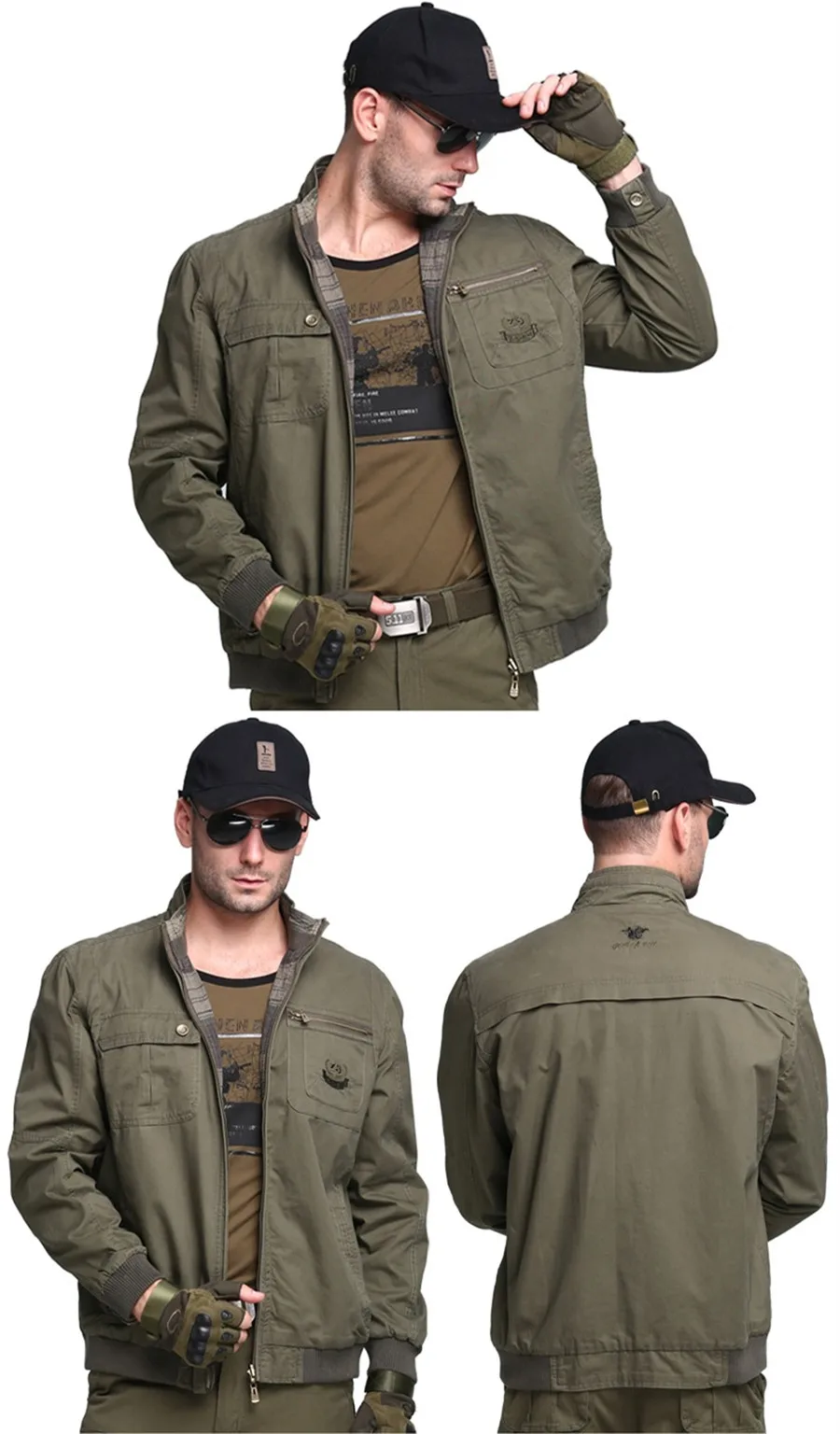 Армейская зеленая военная куртка мужская хлопковая Двусторонняя одежда размера плюс 4XL с длинными рукавами для кемпинга и охоты весенне-осеннее пальто для мужчин