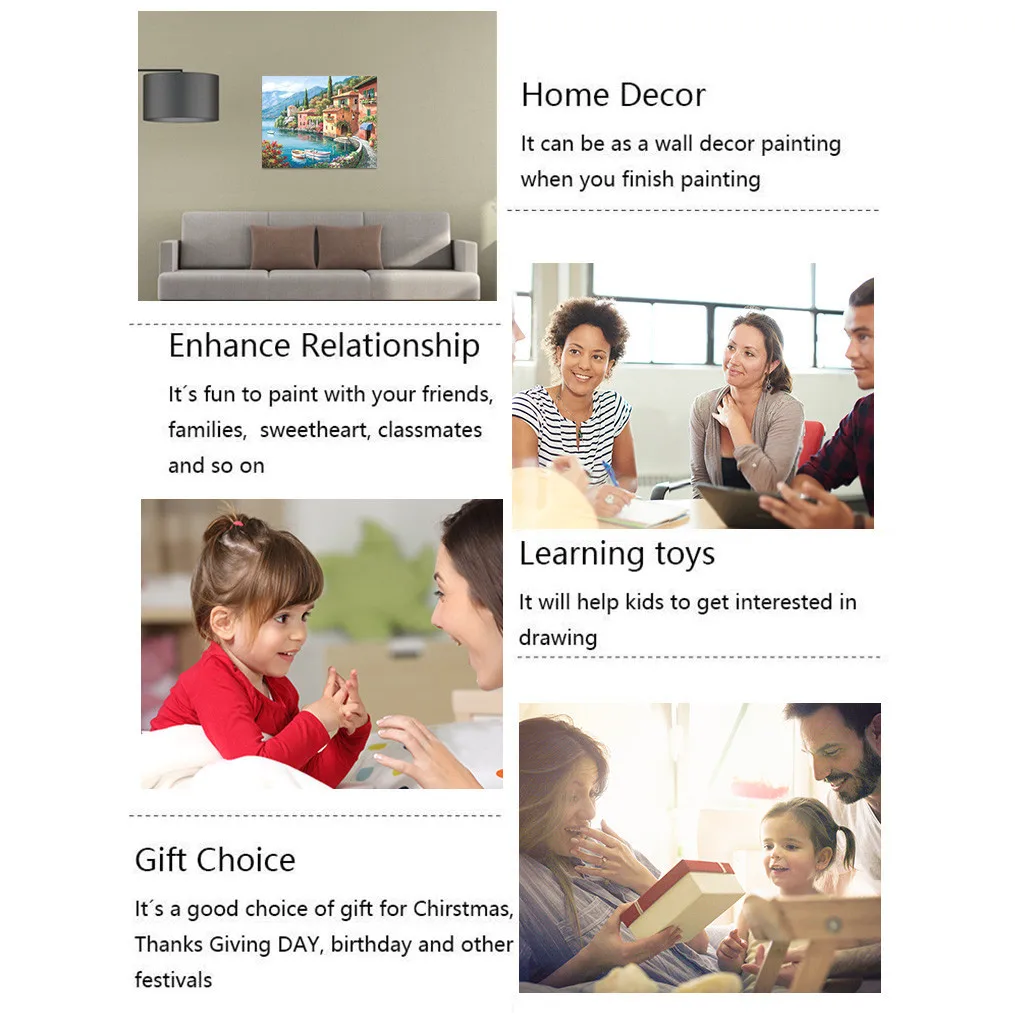 Наборы цифр с кистями и акриловым пигментом, DIY Рисование на холсте для взрослых