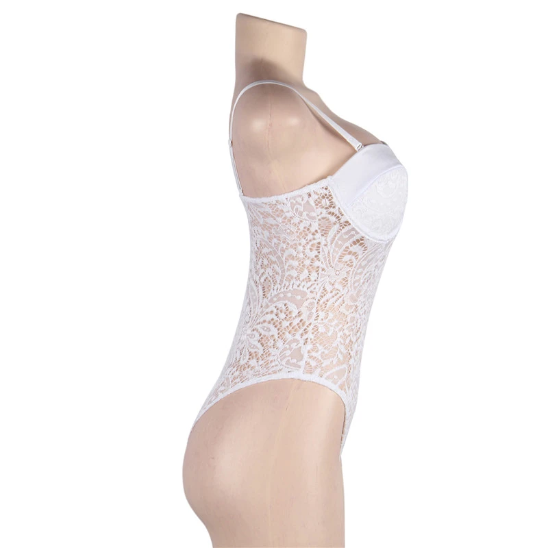 Comeonlover Lace Bodysuit Lingeries Padded Spaghetti Straps Plus Size Women's Romper Suit Underwire Skinny Teddies Lingerie Set