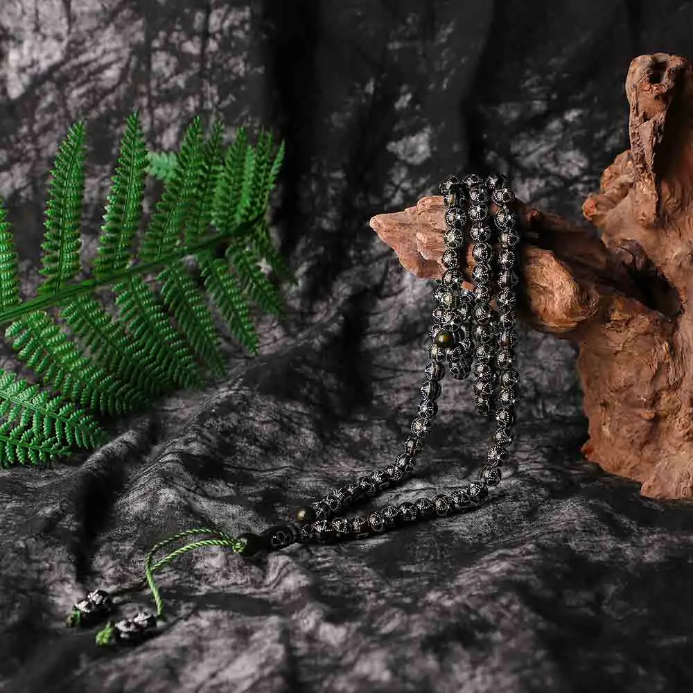 Мусульманский Исламский тасбих, Черный Кристалл, четки для молитвы, браслет круглой формы, 33 бусины, исламский Аллах бусин, браслет для взрослых, четки