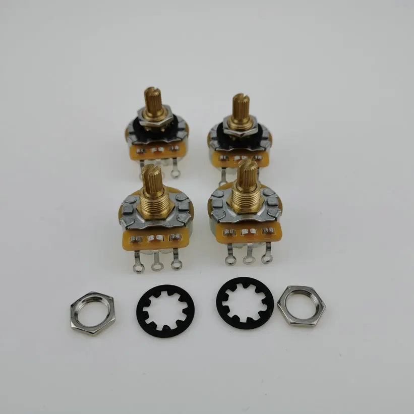 CTS-это завод, специализирующийся на производстве потенциометров электрогитары. Качество потенциометров CTS очень высокое, и масштаб очень точный. Материал медного вала может использоваться для уменьшения шума и дольше