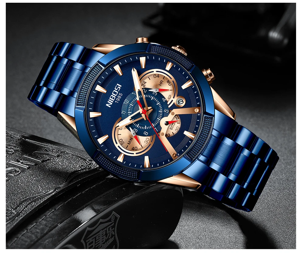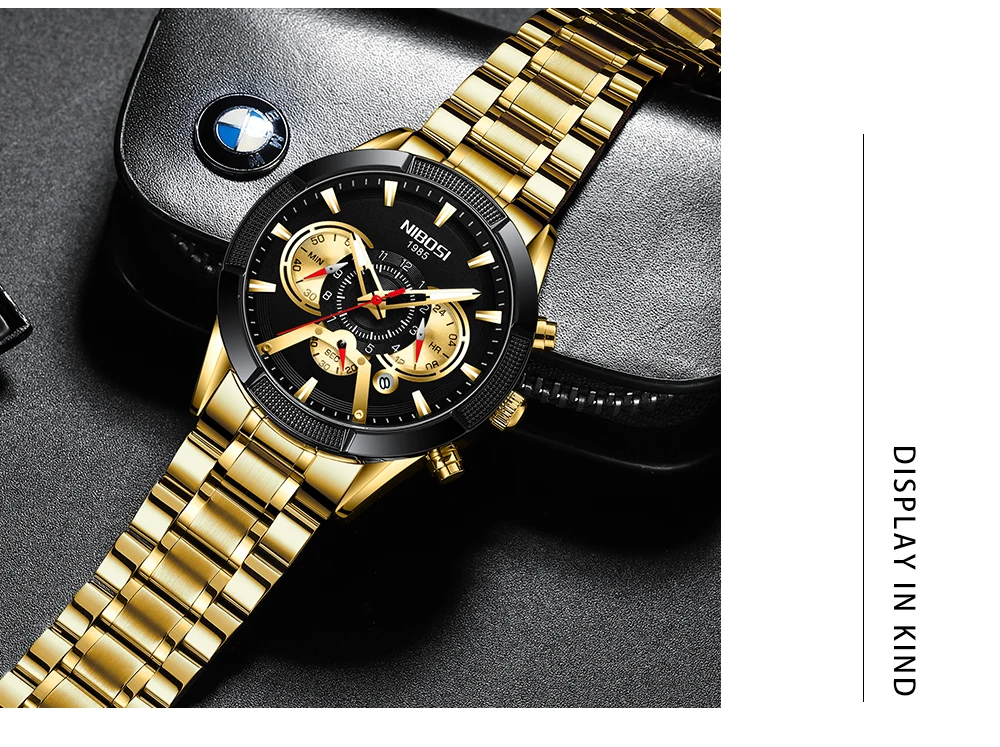 NIBOSI Роскошные Брендовые мужские часы, золотые кварцевые наручные часы, спортивные часы с хронографом, мужские часы из нержавеющей стали, модные деловые часы