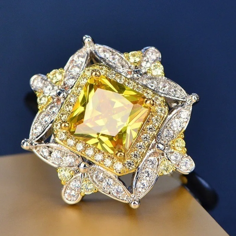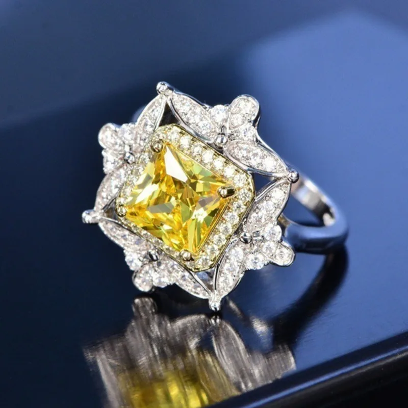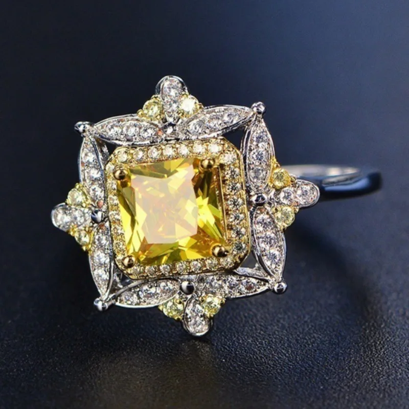 WEGARSTI Vintage 100% 925 Sterling Silver Citrine Gemstone Birthstone Wedding Engagement Diamonds Ring Fine Jewelry Wholesale