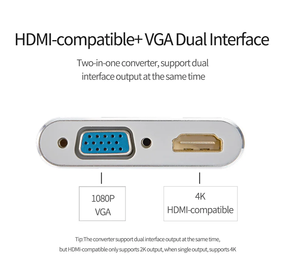 Тип с разъемами типа C и HDMI с поддержкой 4K адаптер HDMI VGA Dual Интерфейс Высокое качество 1080P HD VGA Интерфейс Линукс Windows Android зарядный кабель для передачи данных с конвертер
