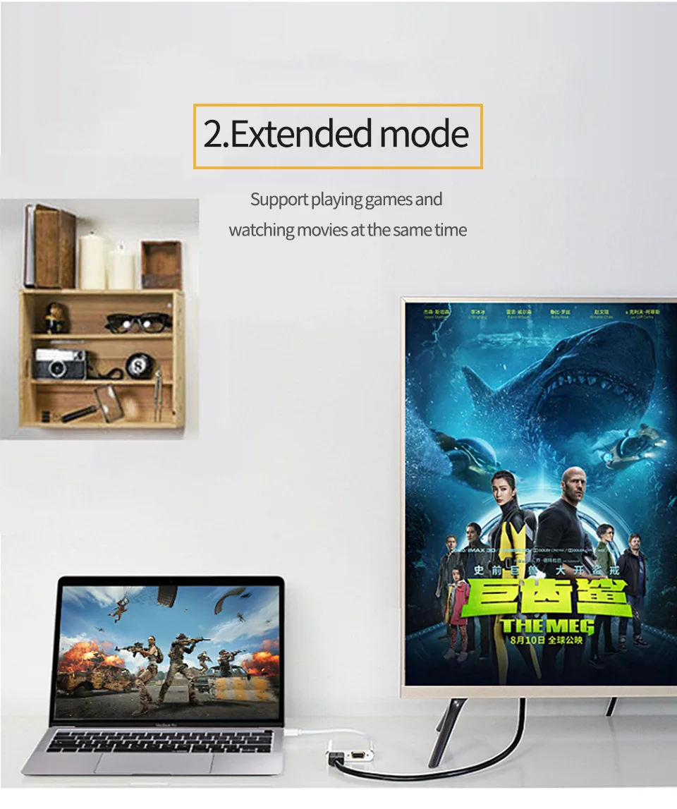 Посылка включает в себя: 1 предмет Тип с разъемами типа C и HDMI/VGA адаптер