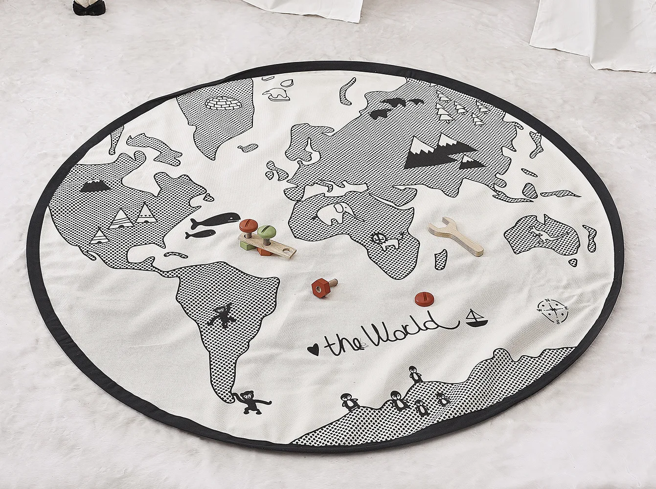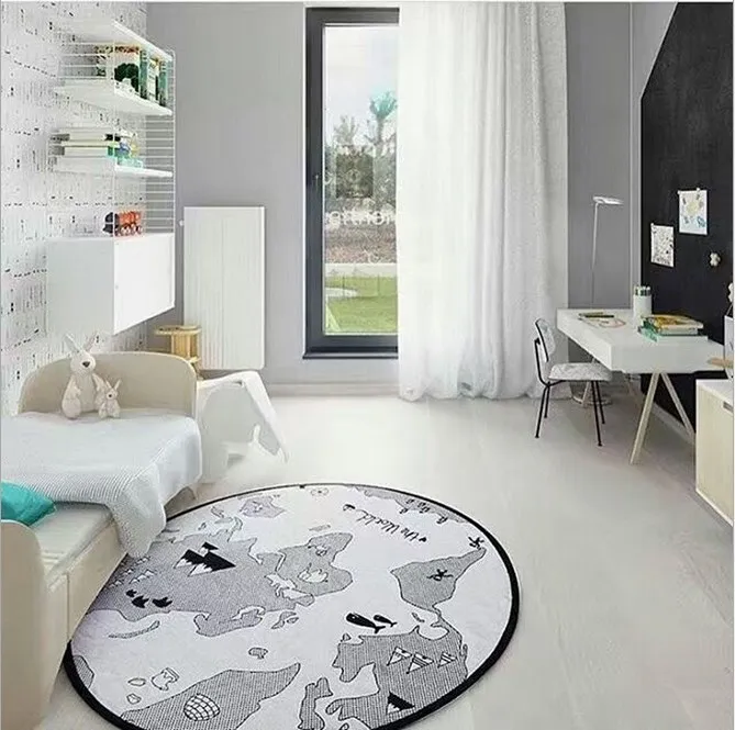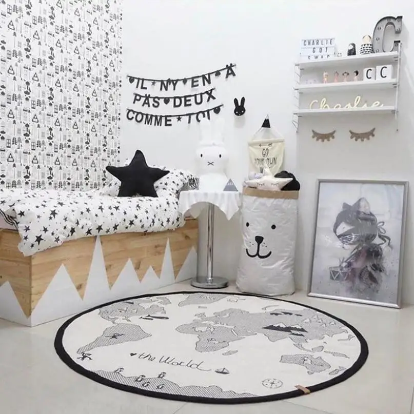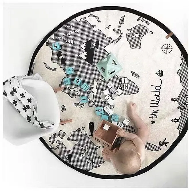 Креативный детский игровой коврик с изображением карты мира, Круглый хлопковый коврик для игр, одеяло для ползания новорожденных, декор для детской комнаты