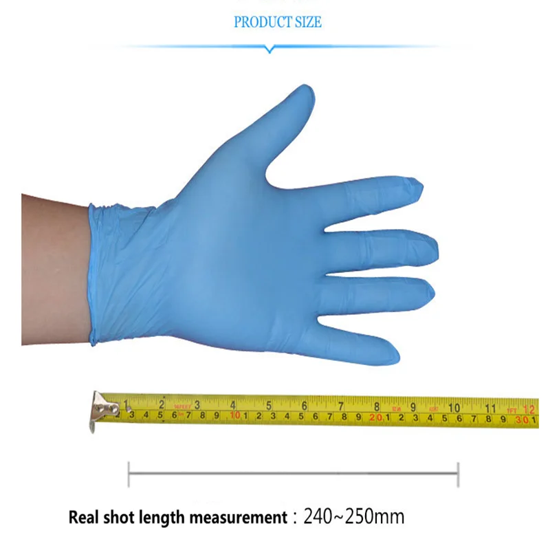 Функция: защитные перчатки Материал: нитрил Длина: 24-25 см Цвет: синий Количество: 100 (50 пар) Диапазон использования: защита рук Размер: S (маленький), M (средний), L (большой), XL (большой)
