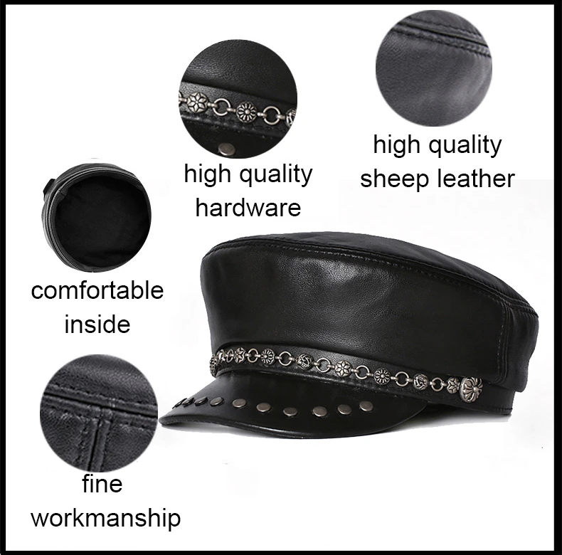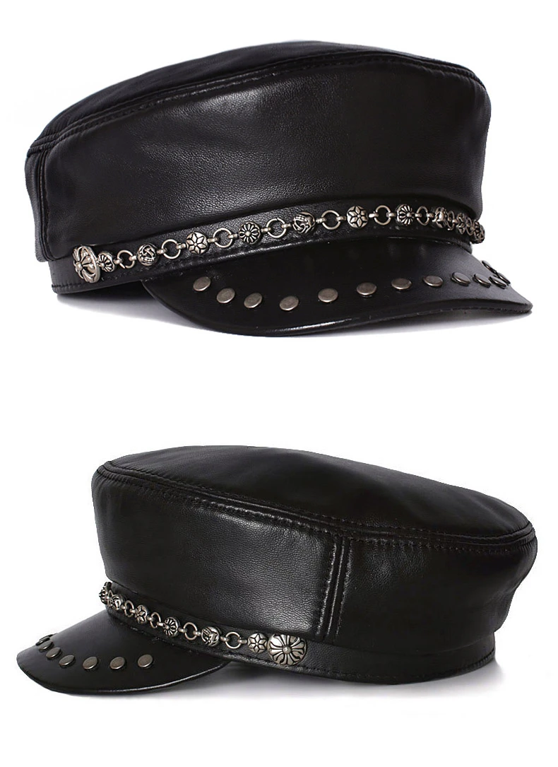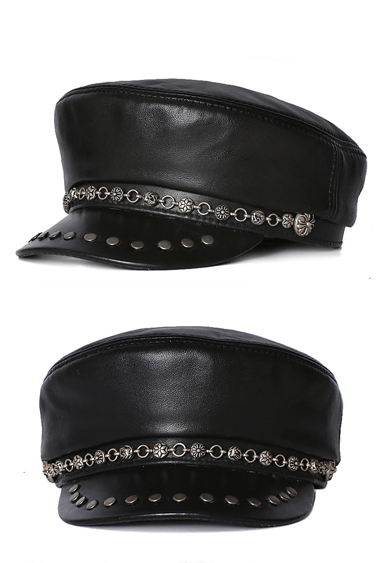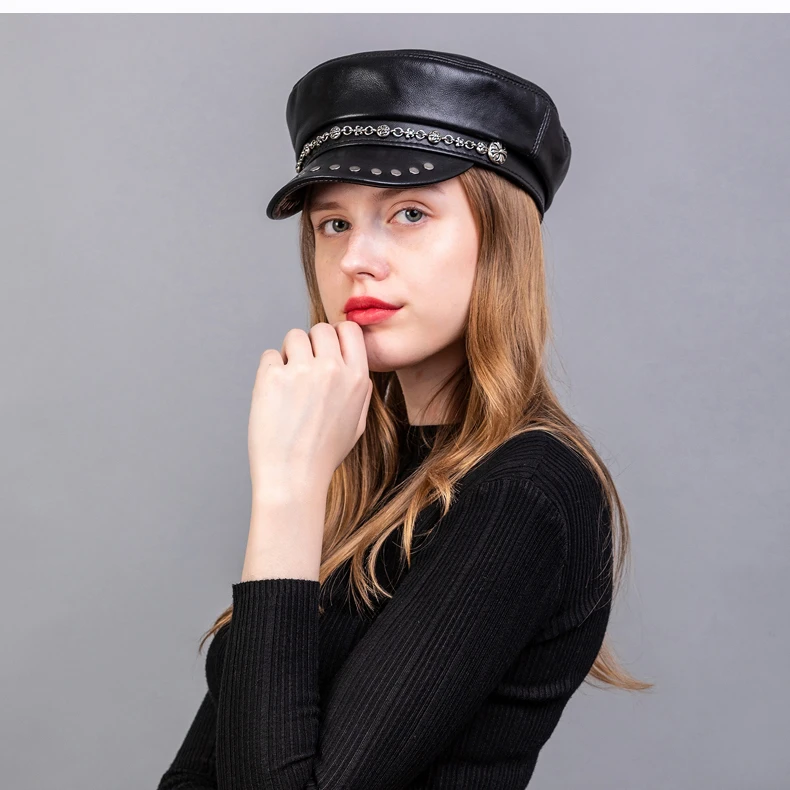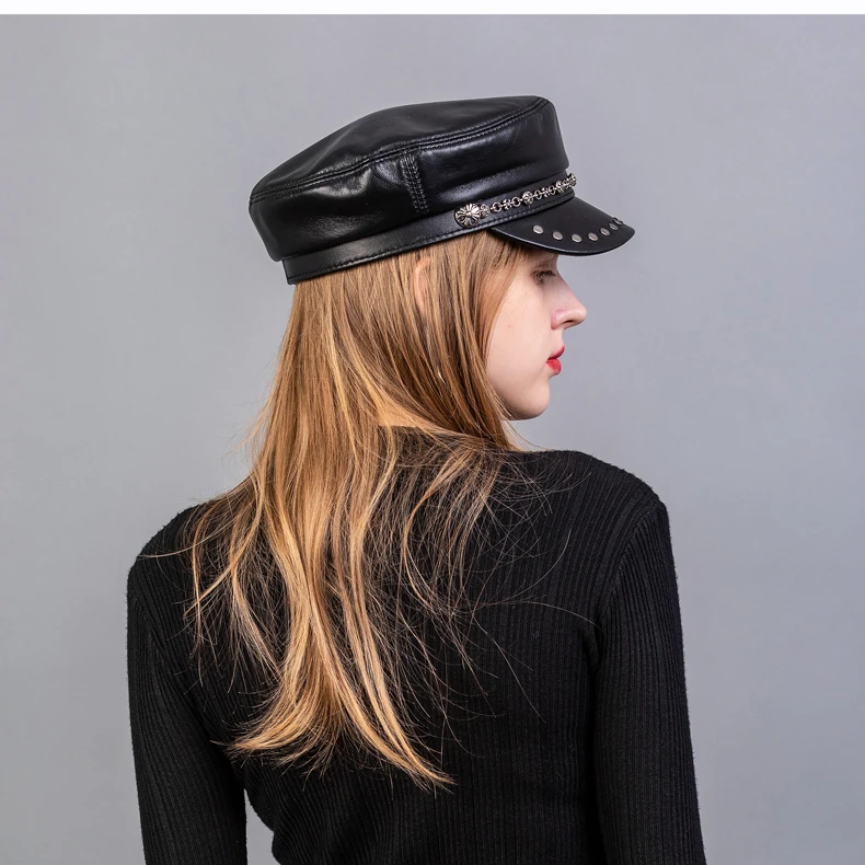 Женская элегантная шапка в стиле милитари на весну, осень и зиму, шапка из натуральной кожи в винтажном стиле, плоская шапка из овечьей кожи