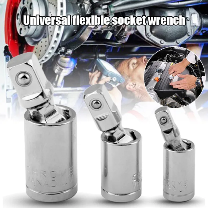 3 Pcs Universal Joint Socket Kit Swivel Hand Tools U-Joint Drive Set Socket Wrench Joints