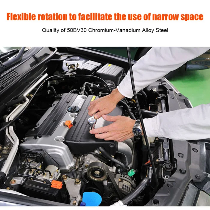 Flexibility is yours with the 3-pc universal joint getting you in and out of these tight places at home or on the job for quicker adjustments.