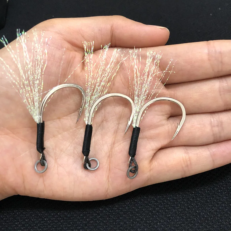 10 шт./лот рыболовные крючки, крючок для джига с PE леской, перо, ложка для джиггинга, рыболовный крючок для соленой воды, ложка, джиг, крючки для приманки, pesca peche