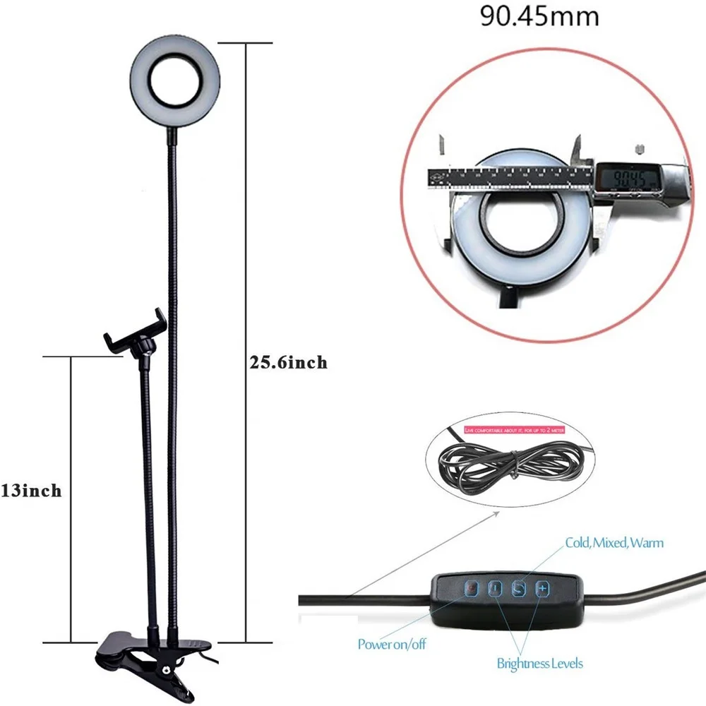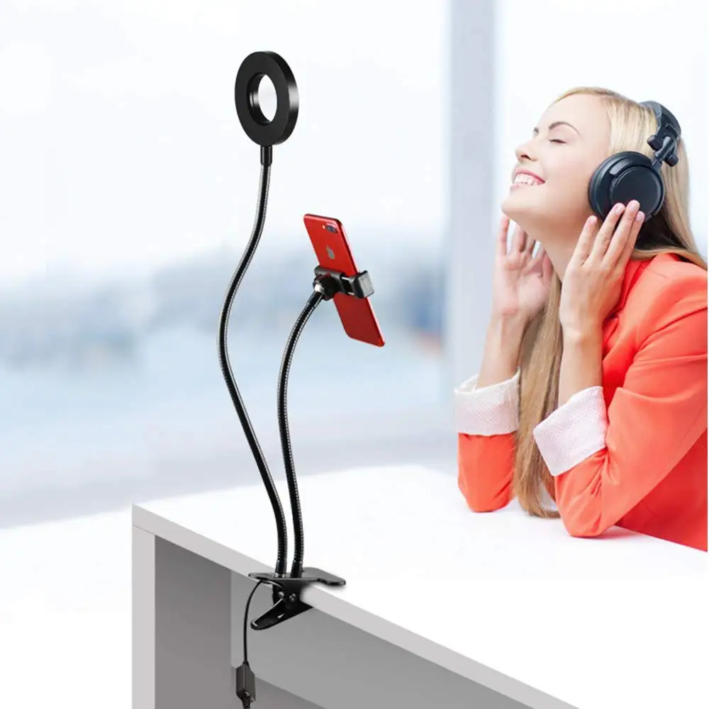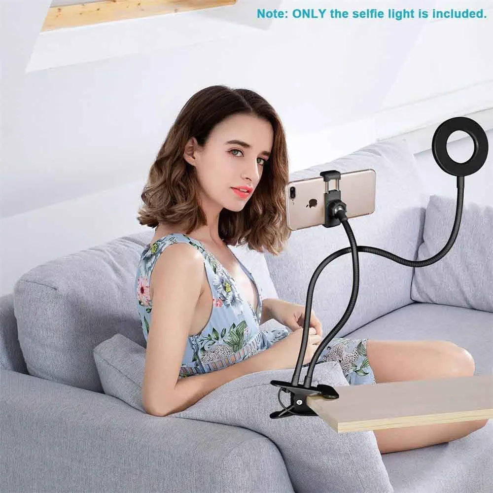 Этот держатель сотового телефона с кольцевым светильник-Профессиональный инструмент для прямой трансляции, шоу в реальном времени, видеочатов. Он может прикрепить на стол, стол, кровать и поворачивать под любым углом, чтобы сделать вас свободными от рук.