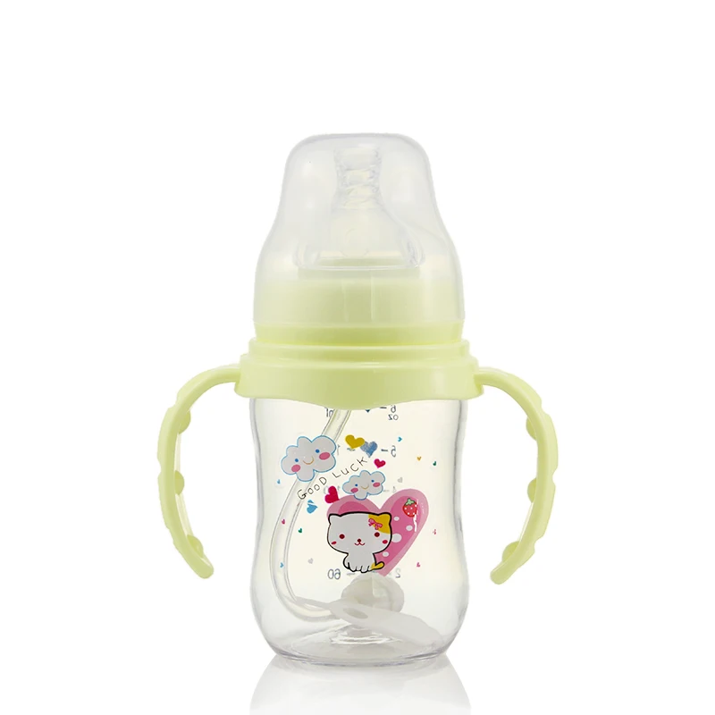180 мл милая детская бутылочка для кормления молока с противоскользящей ручкой и крышкой для чашек с широким горлышком, бутылка для воды, Новинка