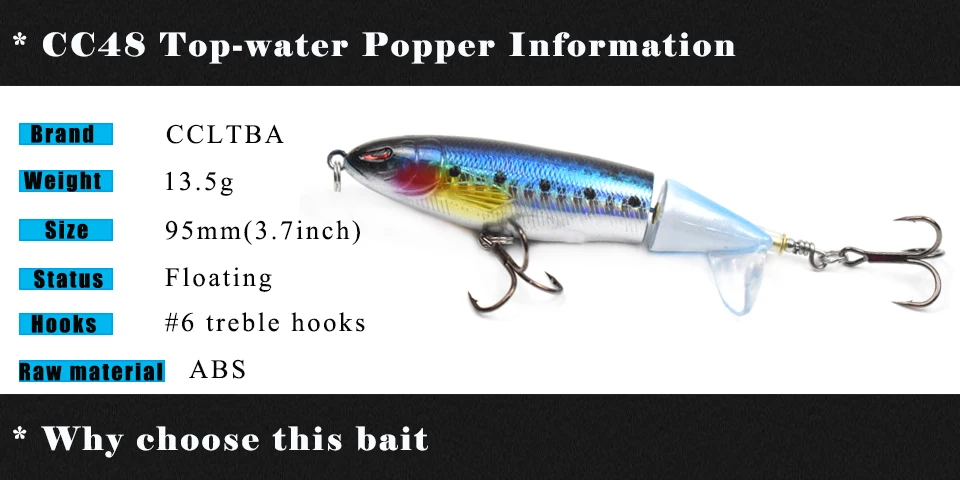 CCLTBA Topwater Поппер 9,5 см 13,5 г вращающийся хвост рыболовные приманки Плавающий Две Соединенные жесткие приманки для форели окуня Щука рыболовная приманка