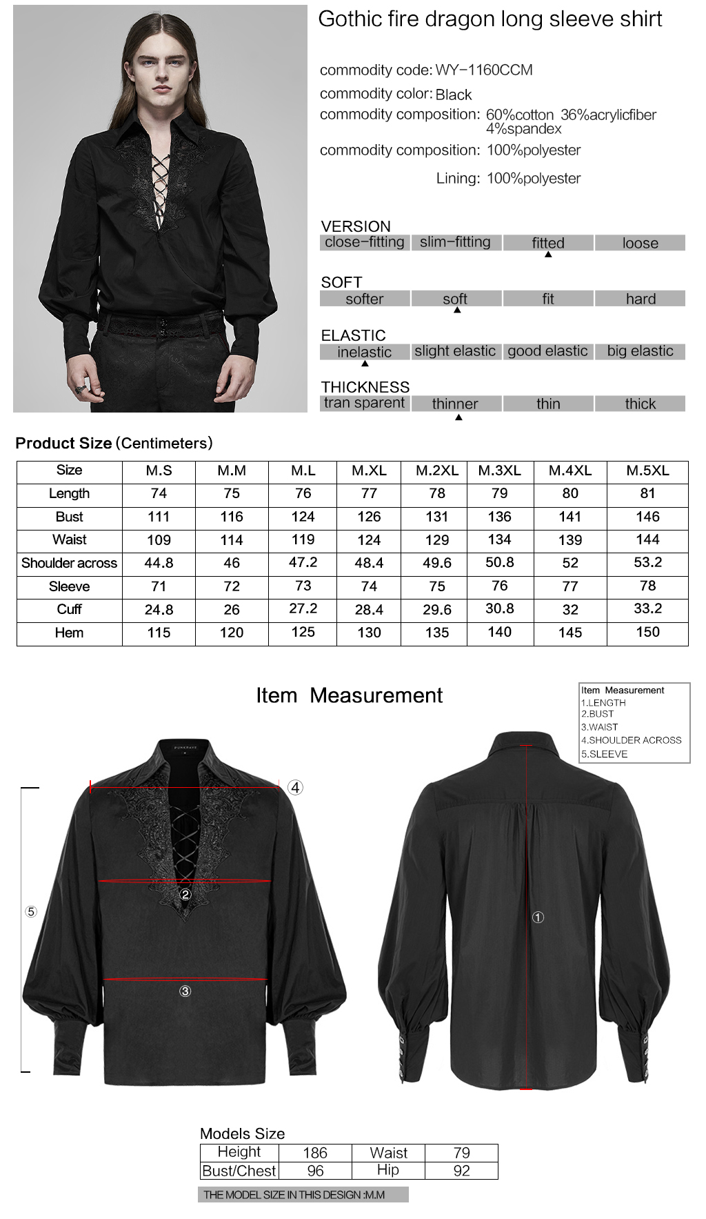 Готическая рубашка с длинными рукавами и изображением огненного дракона