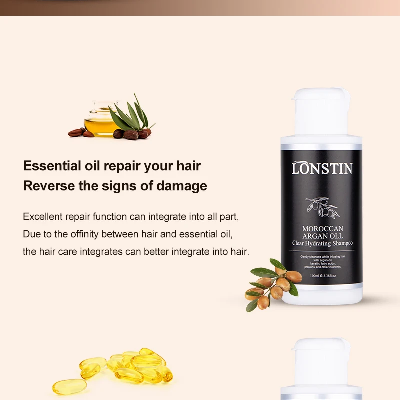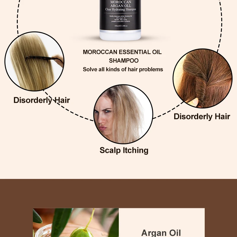 Профессиональный шампунь с аргановым маслом, 100 мл, средство для ухода за волосами против перхоти для всех видов волос