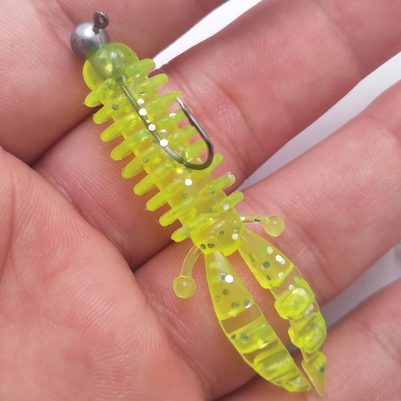 3. Вес: 1,5g Длина: 5,5 см. Это идеальный размер еды для басов и большинства пресноводных видов.